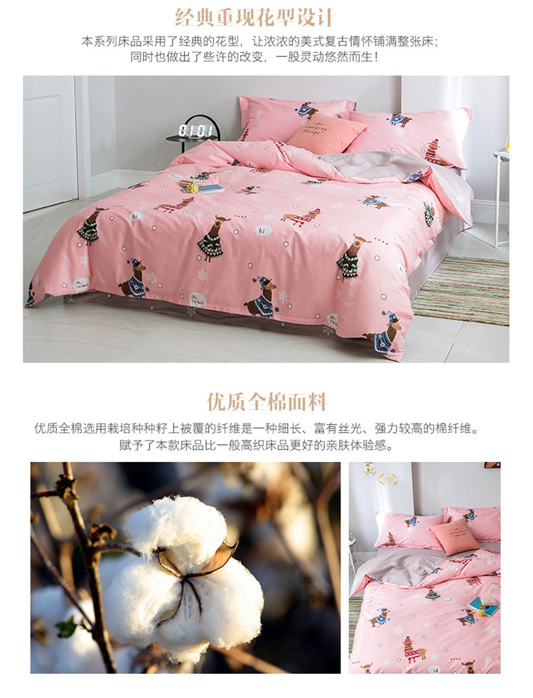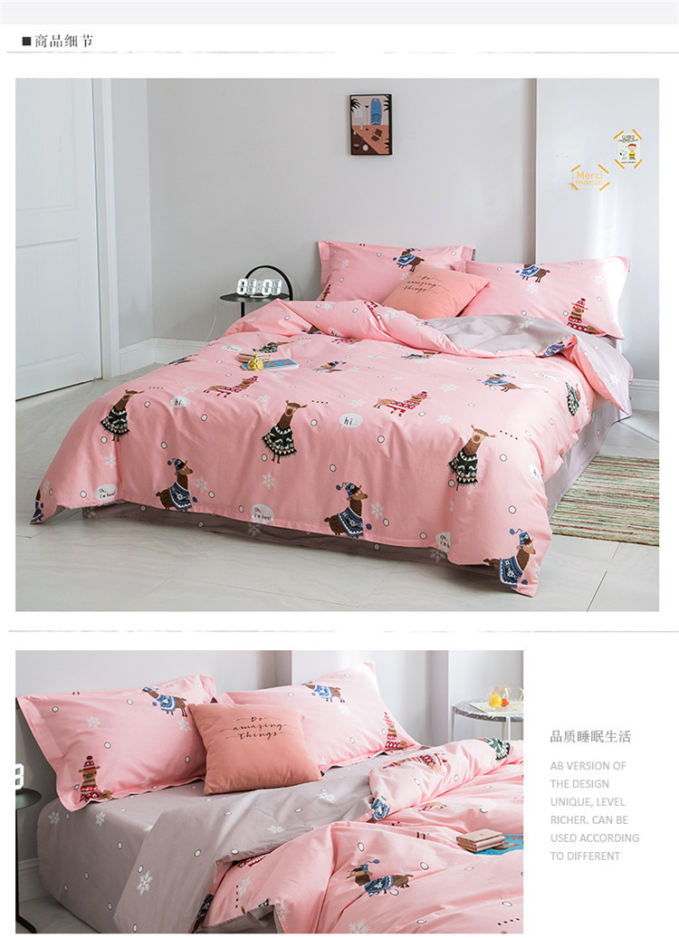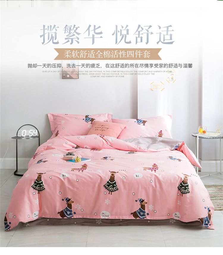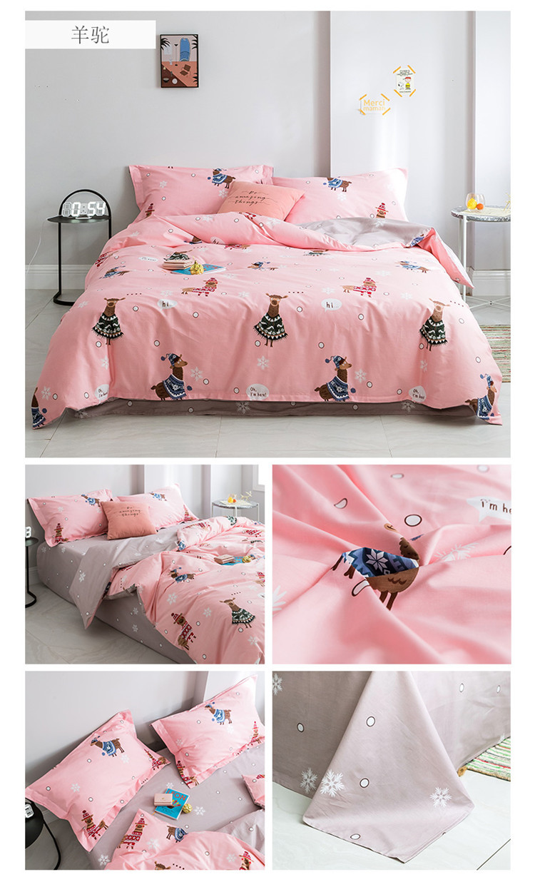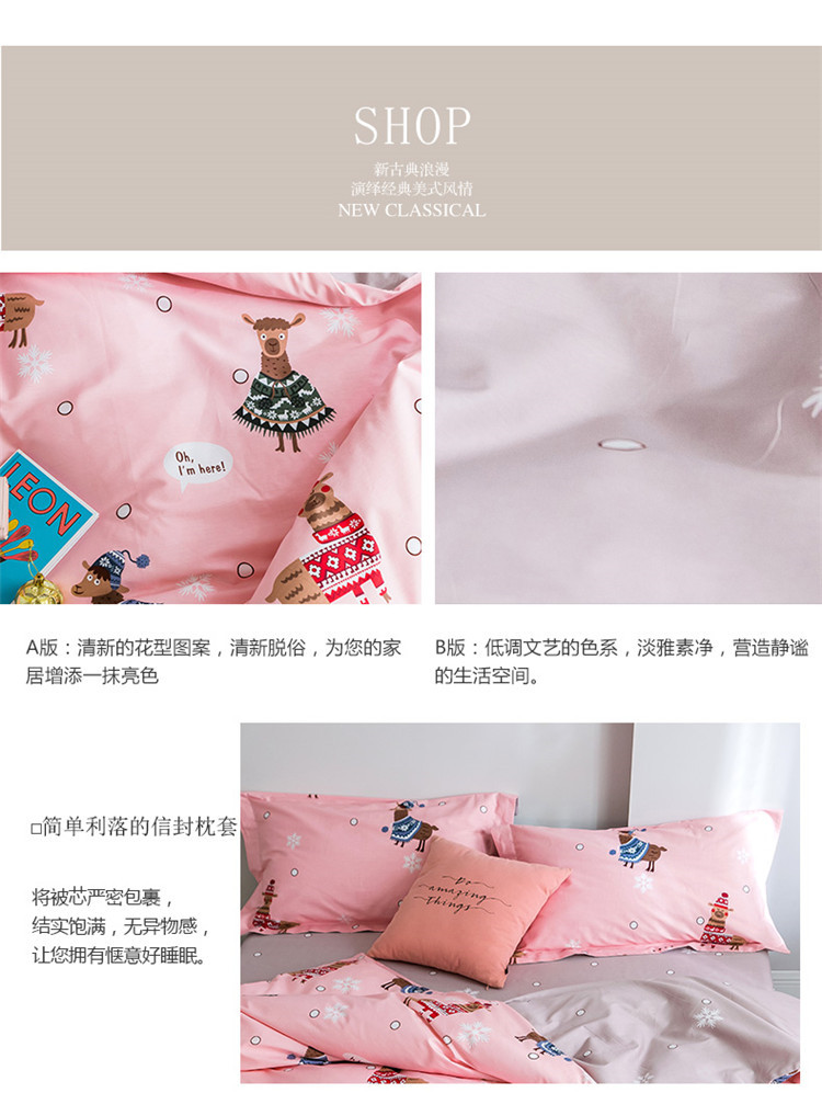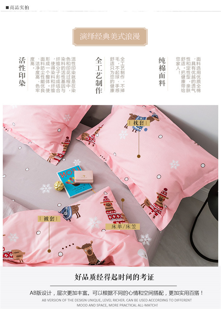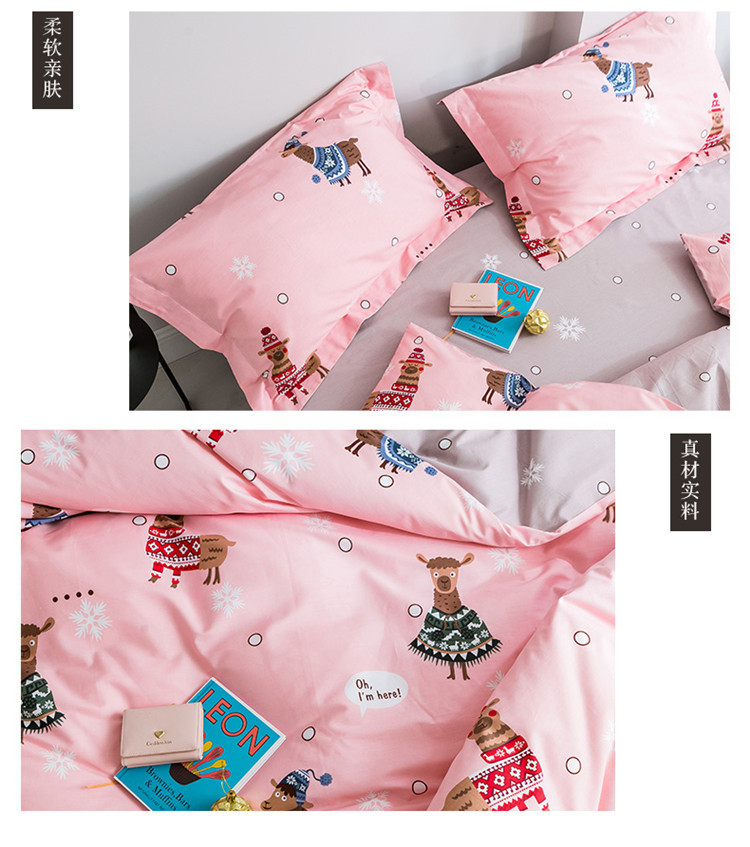 窝米 2019全棉13372减龄卡通系列四件套床单款 羊驼