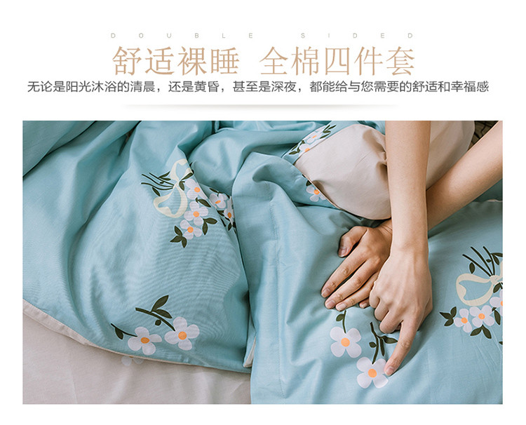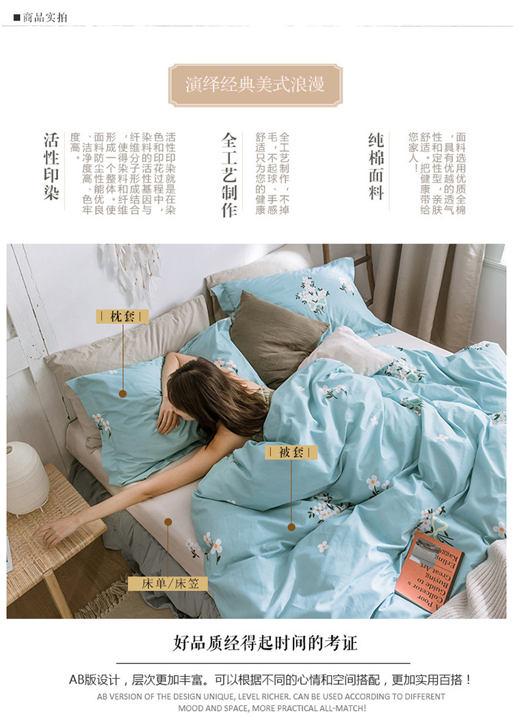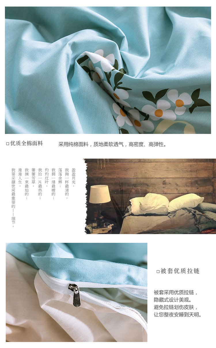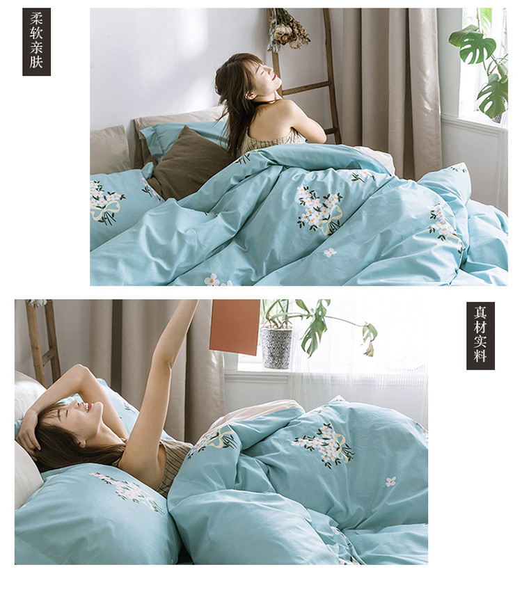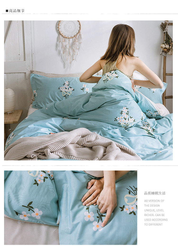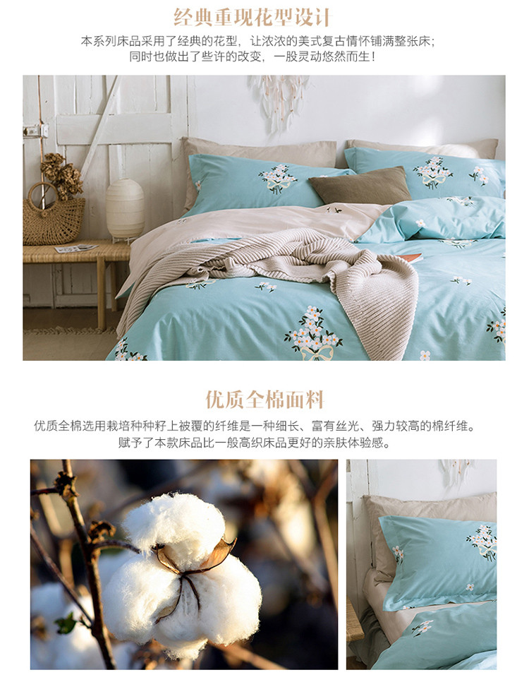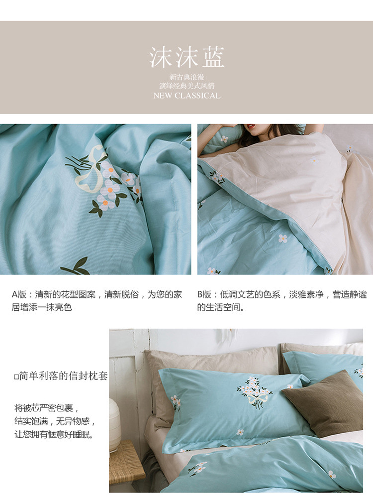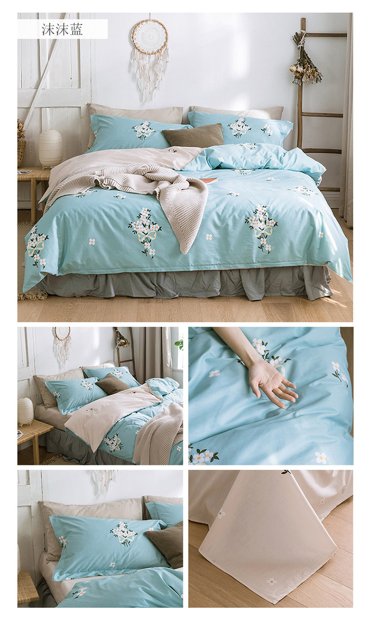 商品名称:窝米 2019全棉13372田园花卉系列四件套床单款 沫沫蓝