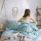 窝米 2019全棉13372田园花卉系列四件套床单款 沫沫蓝