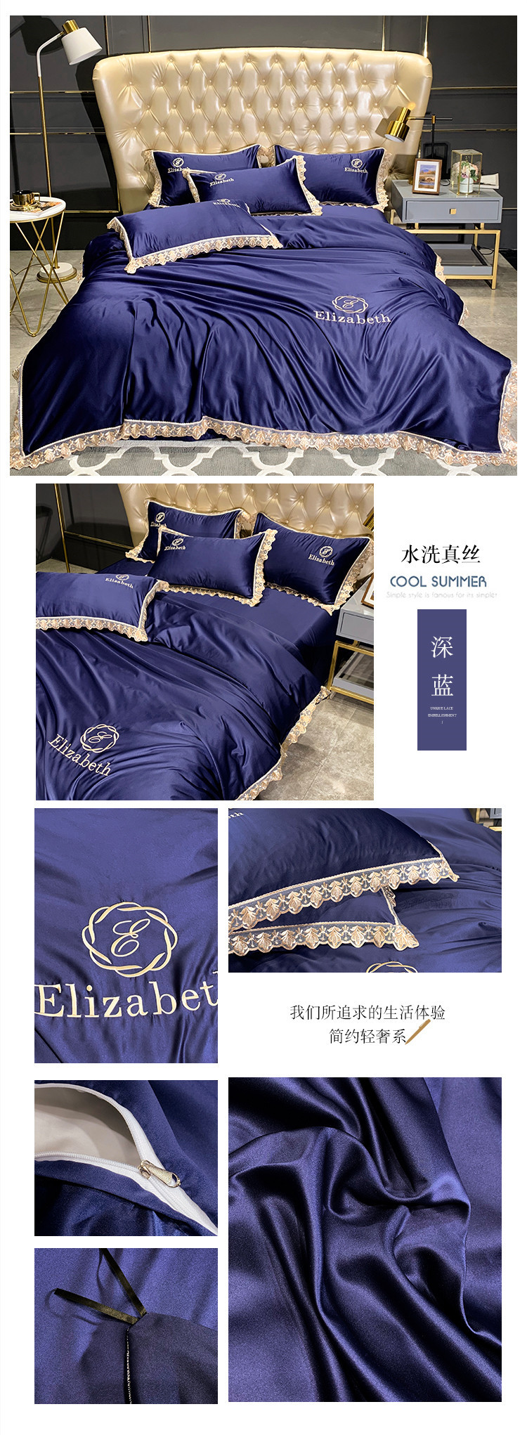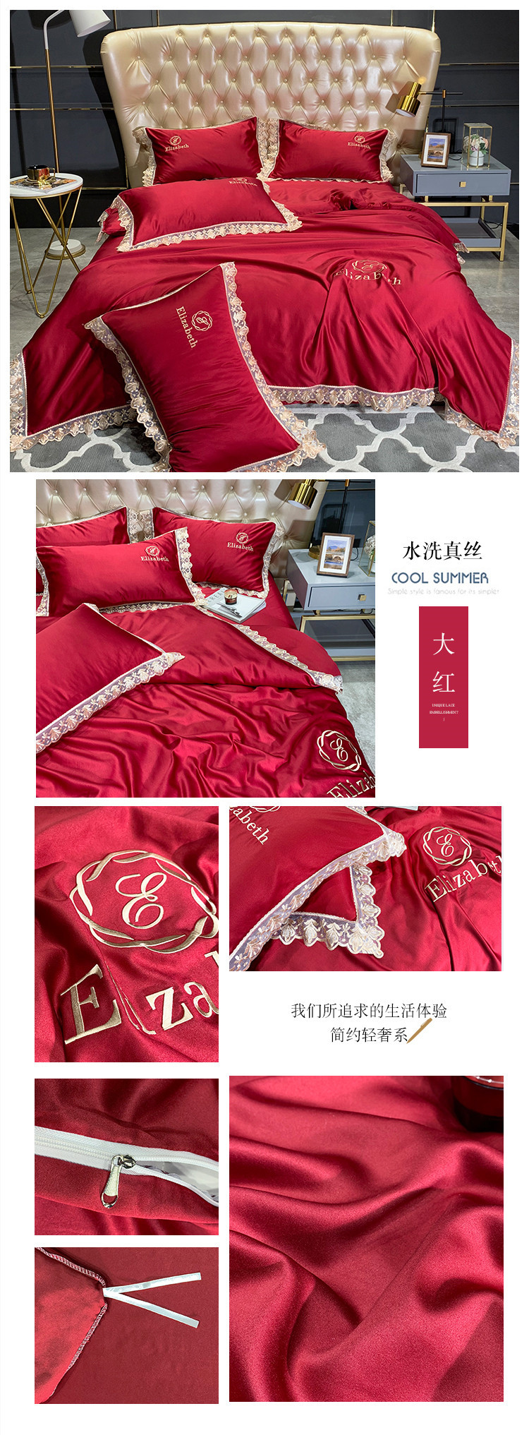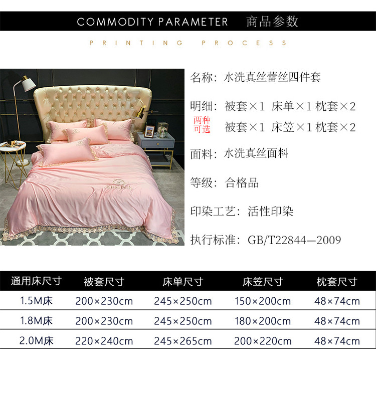 商品名称:(总)米奈 2020新款水洗真丝蕾丝花边爱琳系列四件套