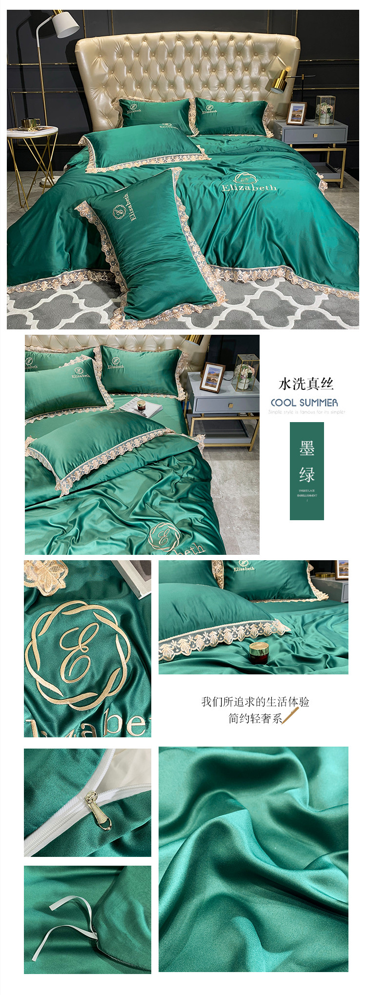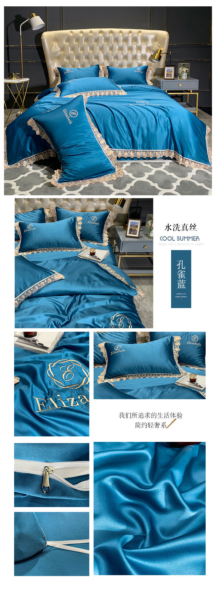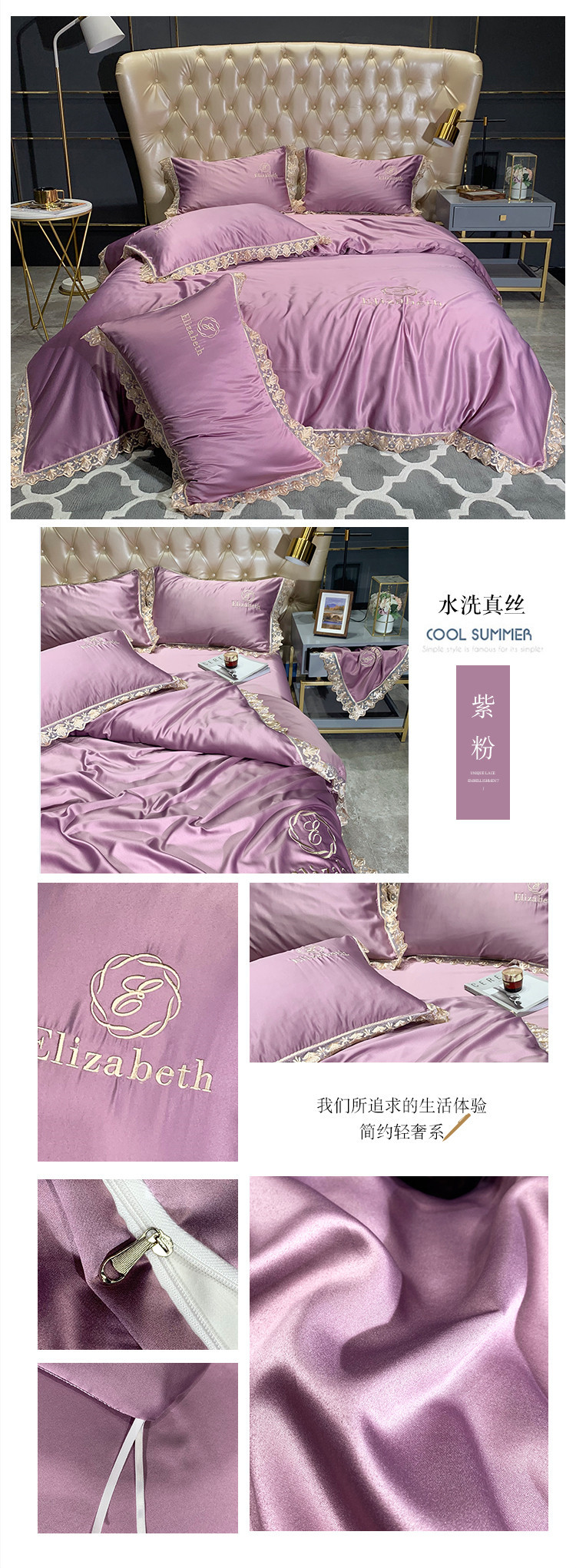 商品名称:(总)米奈 2020新款水洗真丝蕾丝花边爱琳系列四件套