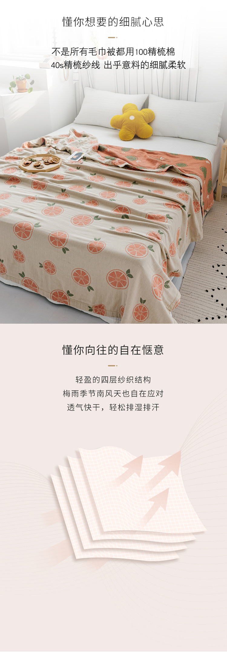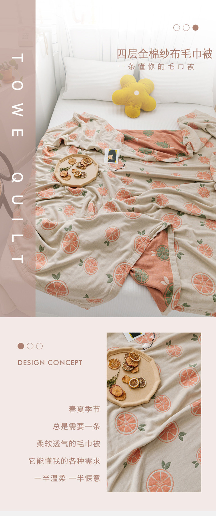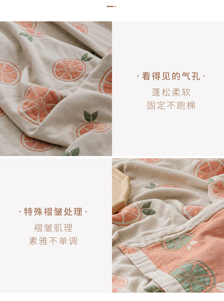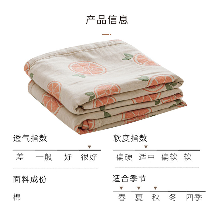商品名称:朴尔 2020年新款水果系列四层纱布毛巾被 半颗柠檬-浅驼