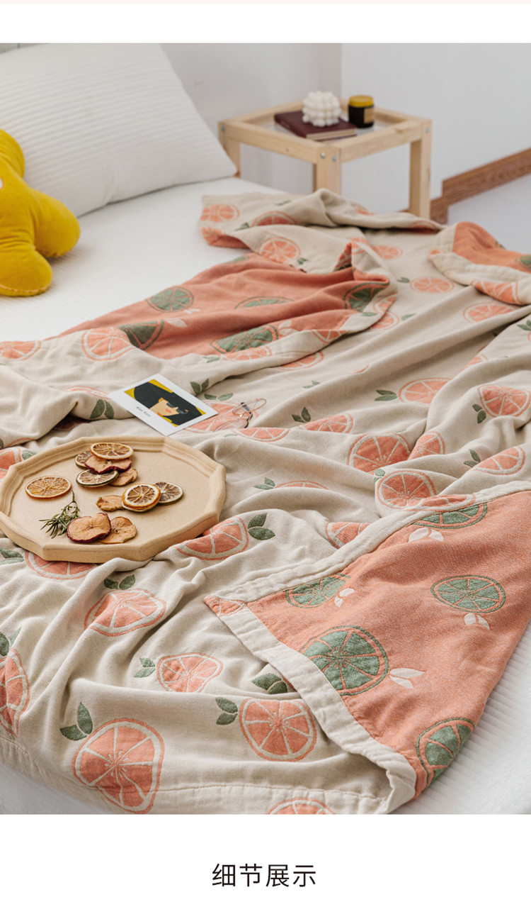 朴尔 2020年新款水果系列四层纱布毛巾被 半颗柠檬-浅驼