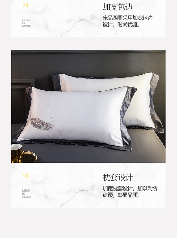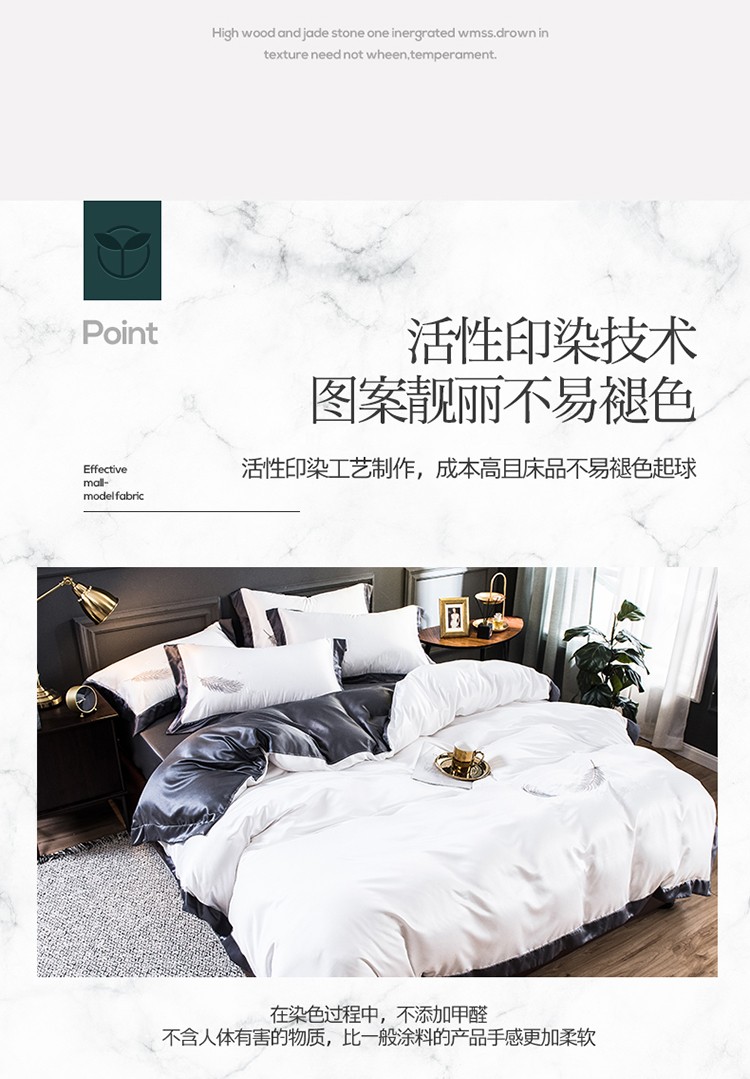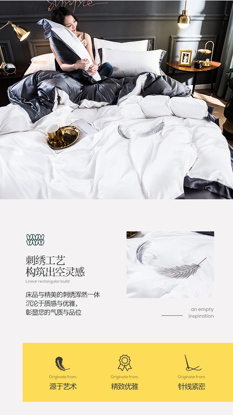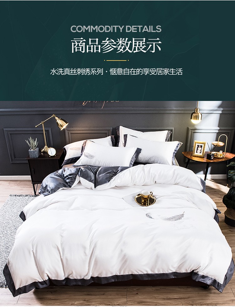 商品名称:骏腾 2022新款纯色水洗真丝刺绣四件套 羽毛-米白