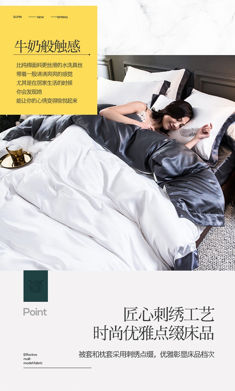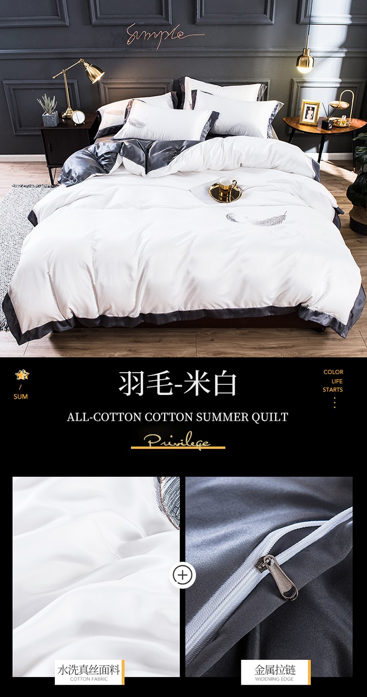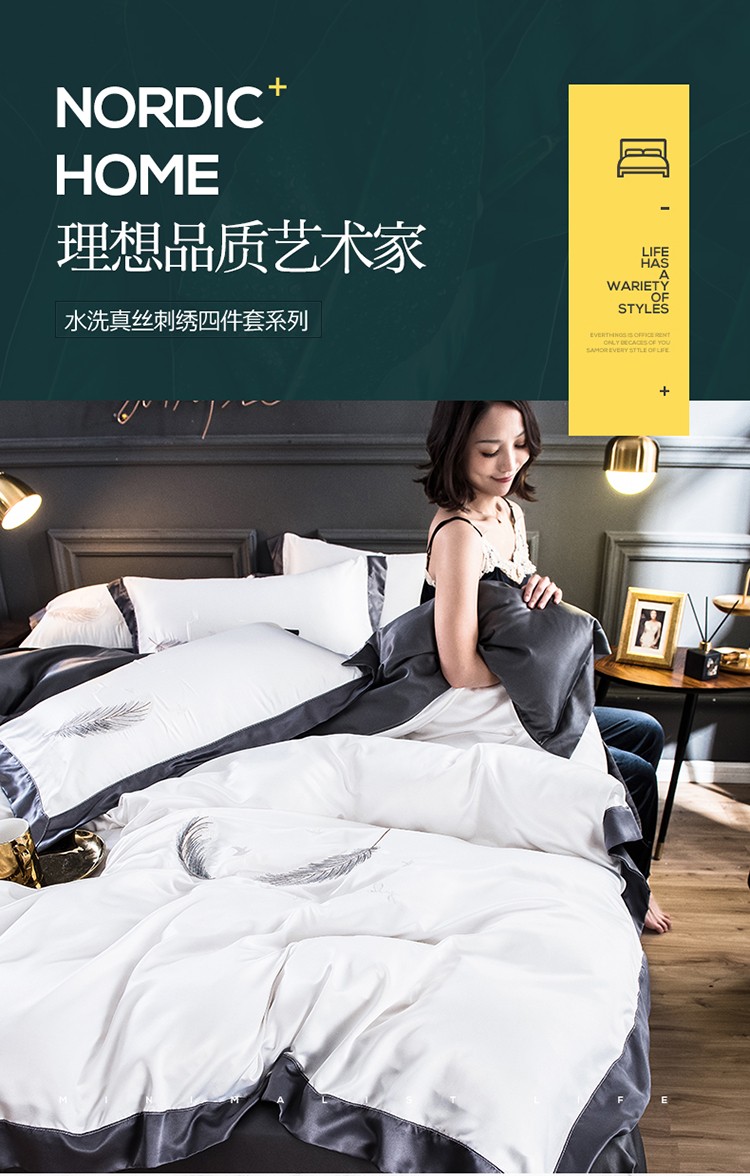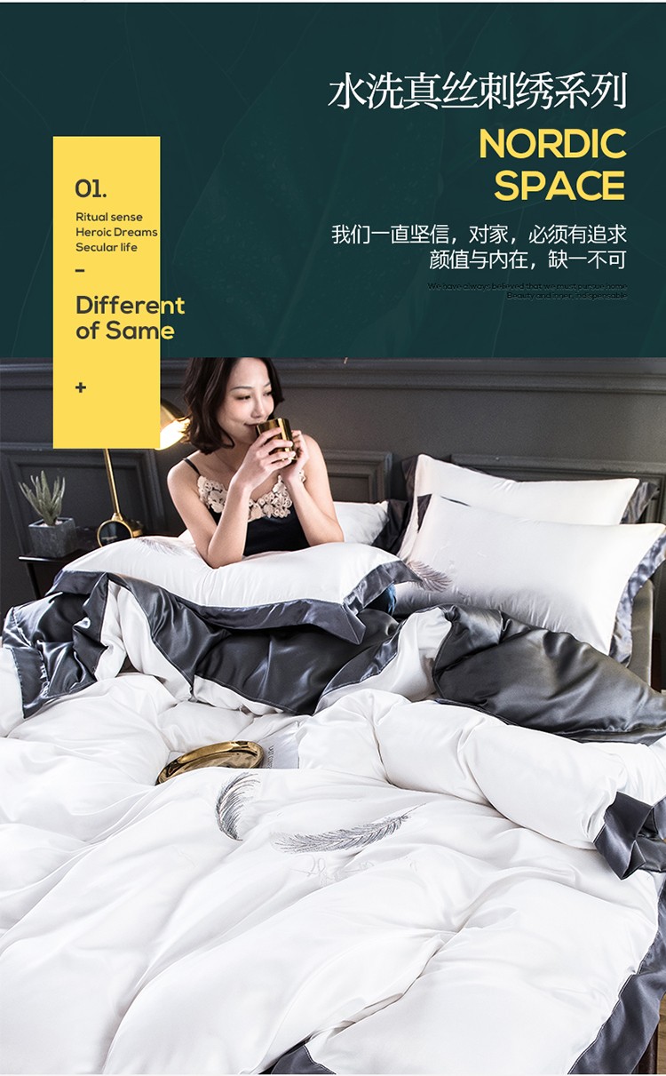 商品名称:骏腾 2022新款纯色水洗真丝刺绣四件套 羽毛-米白