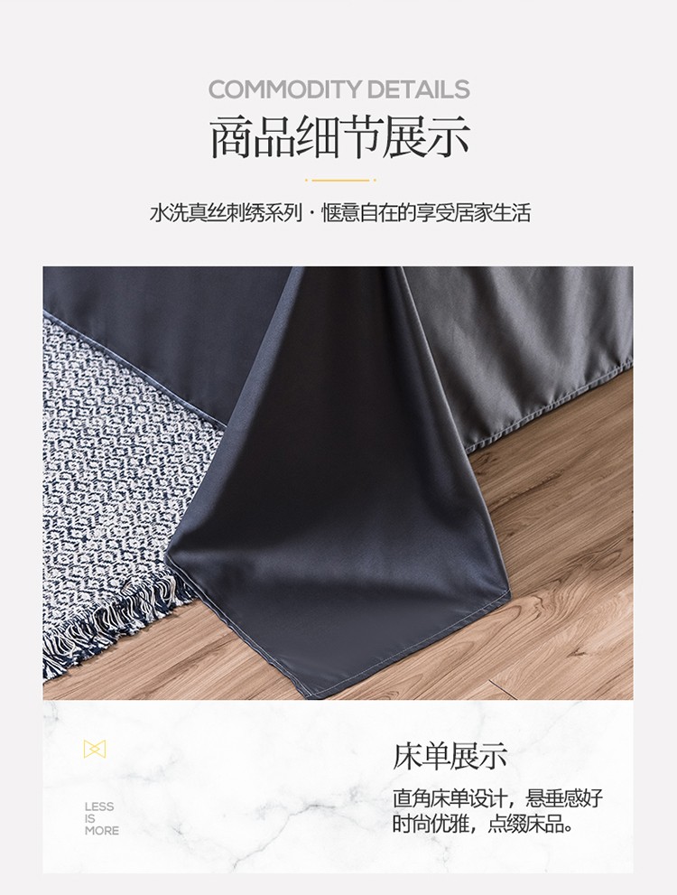 (总)骏腾 2022简爱水洗天丝绣花四件套水洗真丝三件套,宝蓝,湖蓝,酒红,墨绿,深灰,银灰,玉色