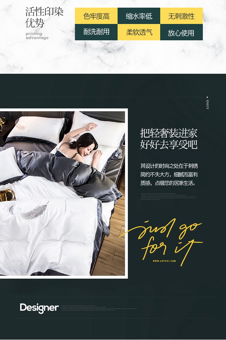 (总)骏腾 2022新款纯色水洗真丝刺绣四件套,羽毛-湖蓝,羽毛-米白,羽毛-墨绿,羽毛-深蓝,羽毛-天蓝,羽毛-银灰