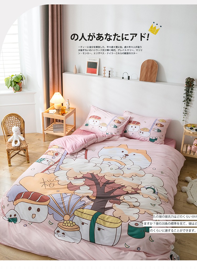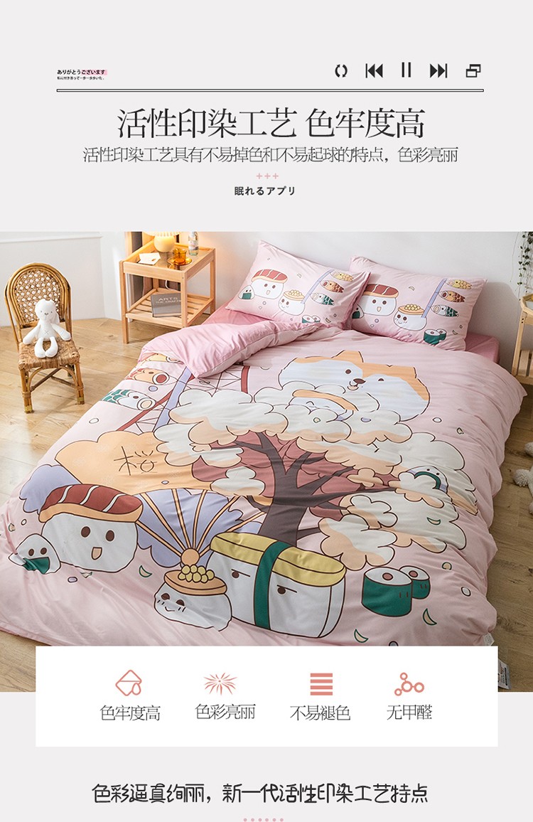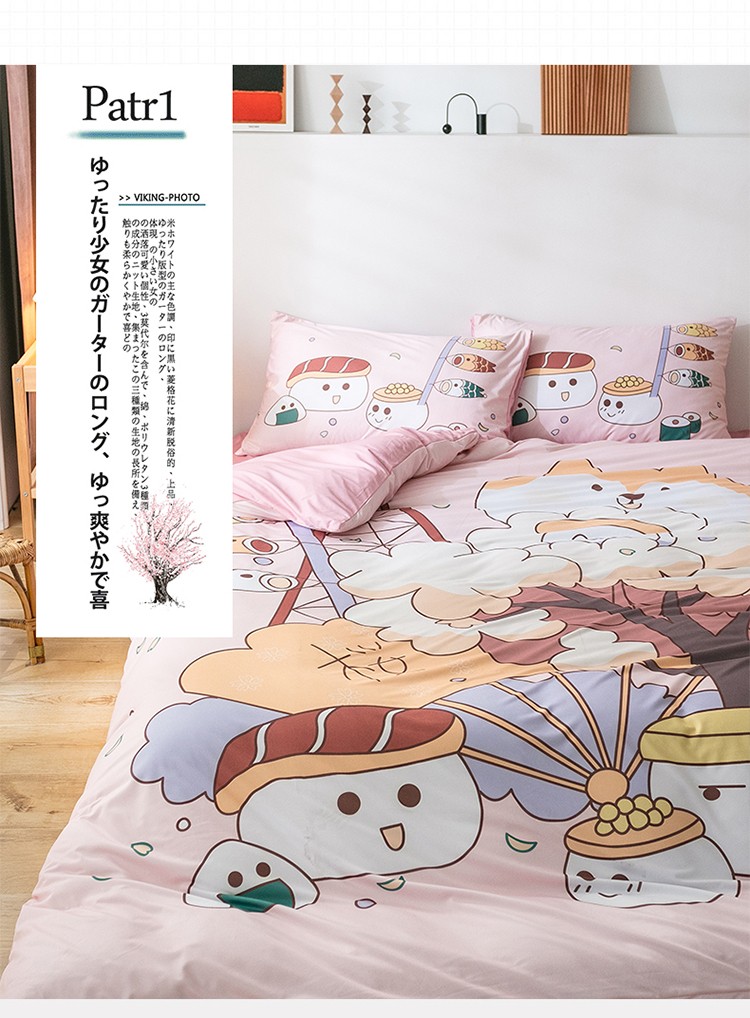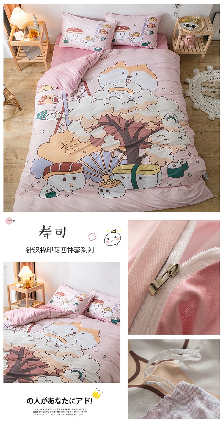 爱缦 2020新款日系针织棉数码大版印花四件套 寿司
