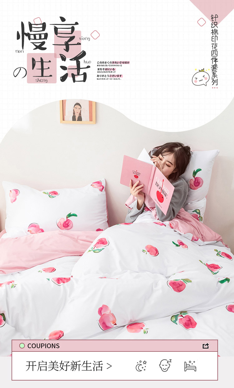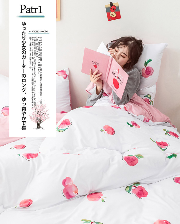 商品名称:爱缦 2020日系针织棉数码小版印花四件套 红富苹果