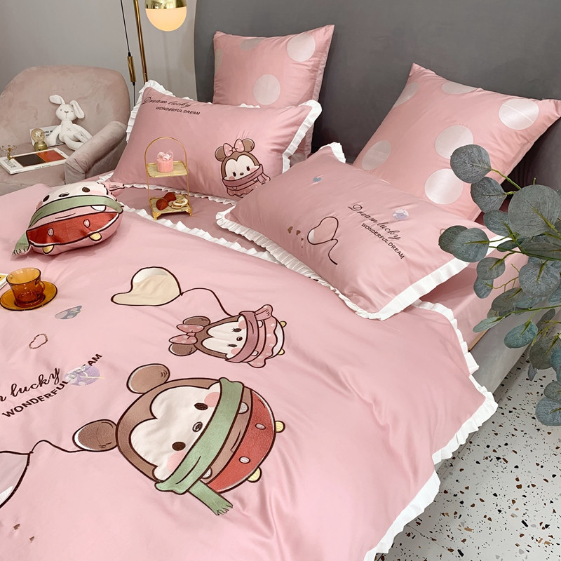 馨蕊家居 2021新款春夏60s长绒棉四件套 粉