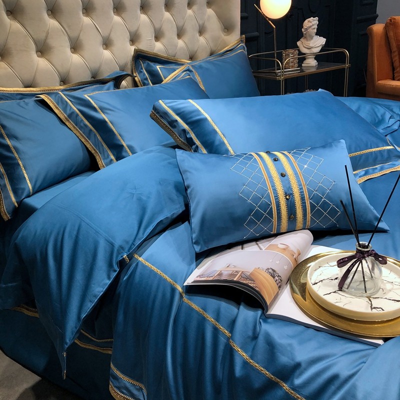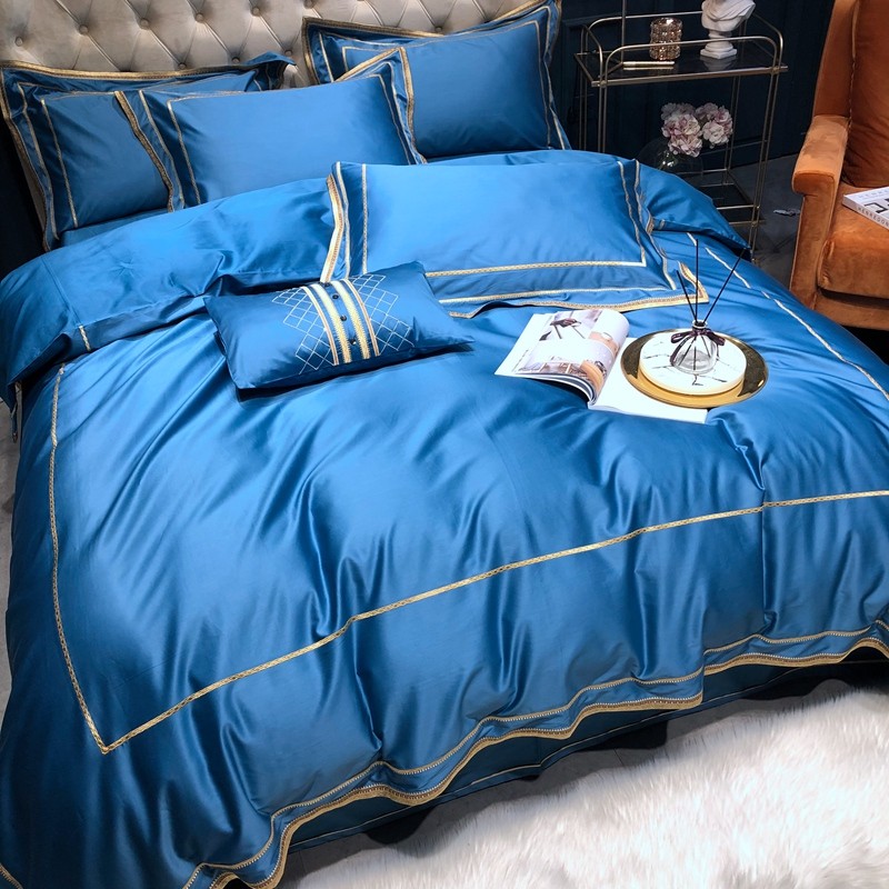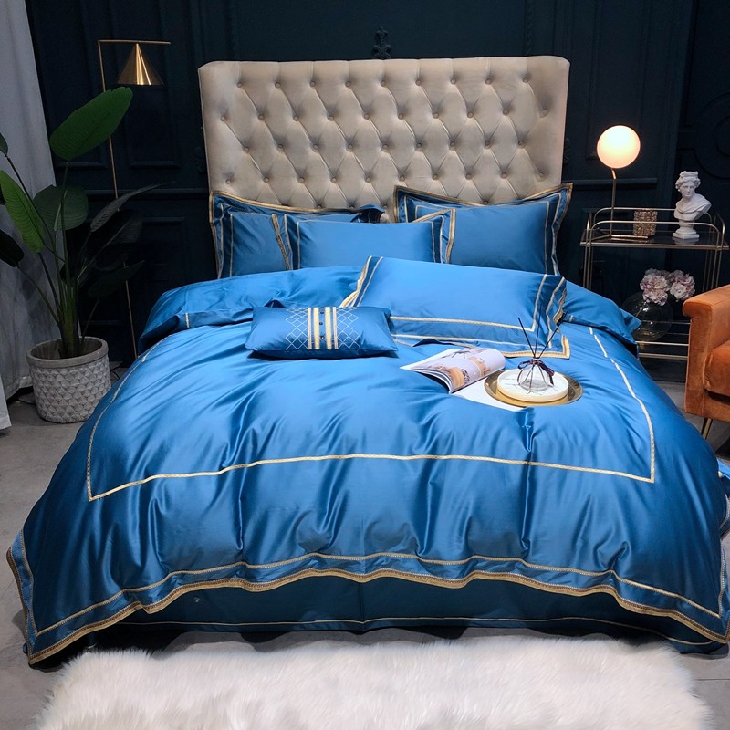 馨蕊家居 2021新款春夏100S莫兰迪长绒棉四件套 浅石蓝