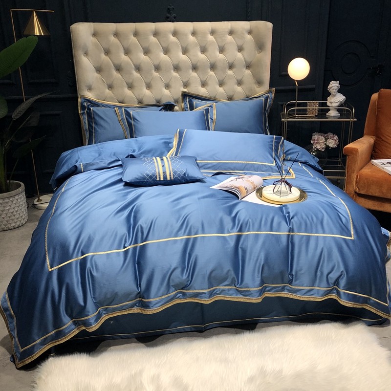 商品名称:馨蕊家居 2021新款春夏100S莫兰迪长绒棉四件套 浅石蓝