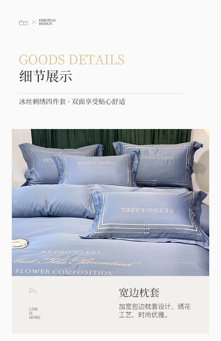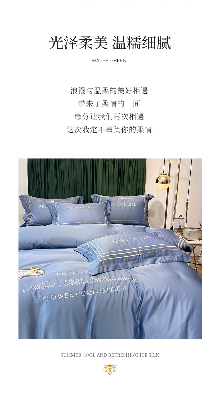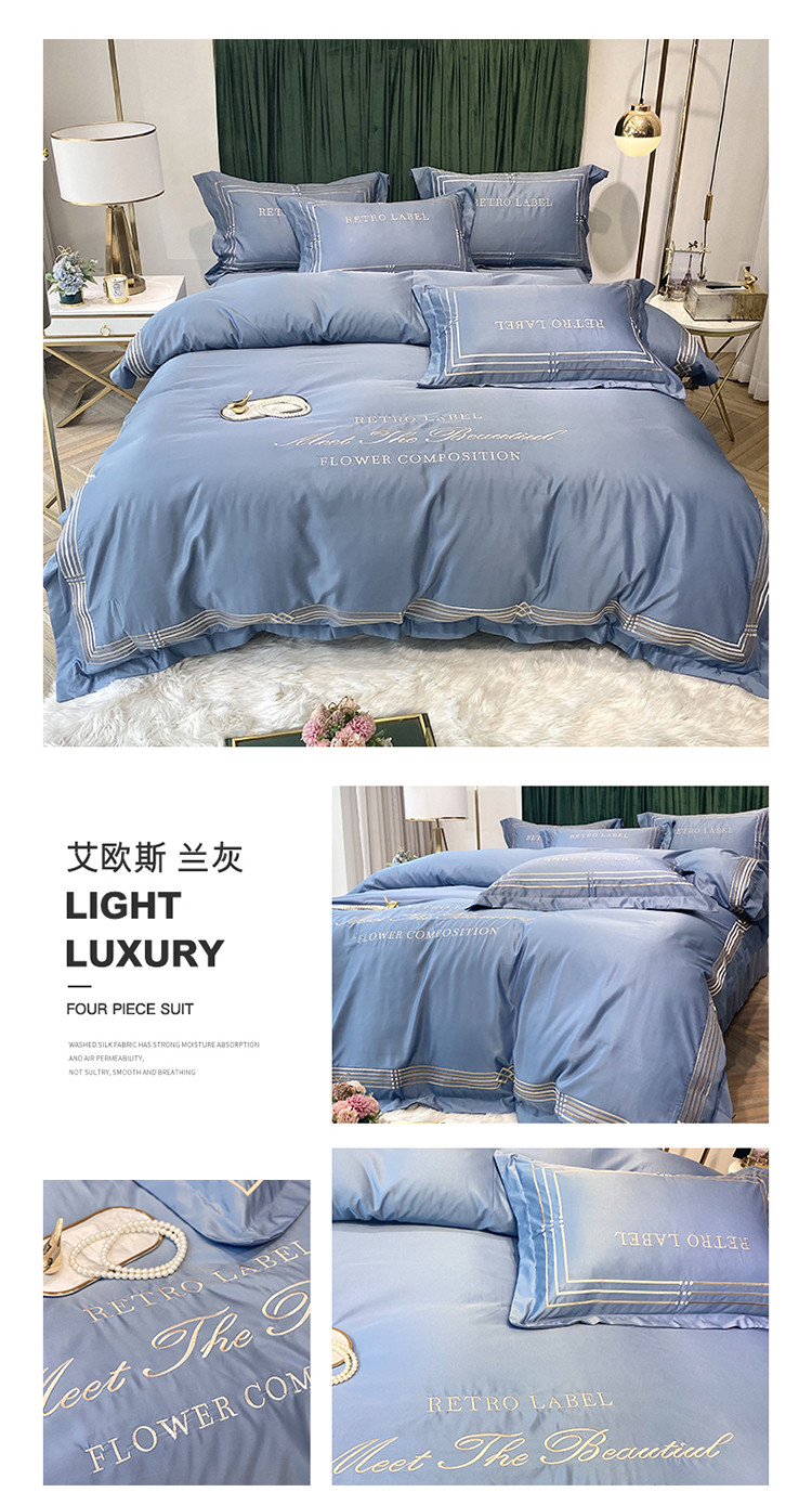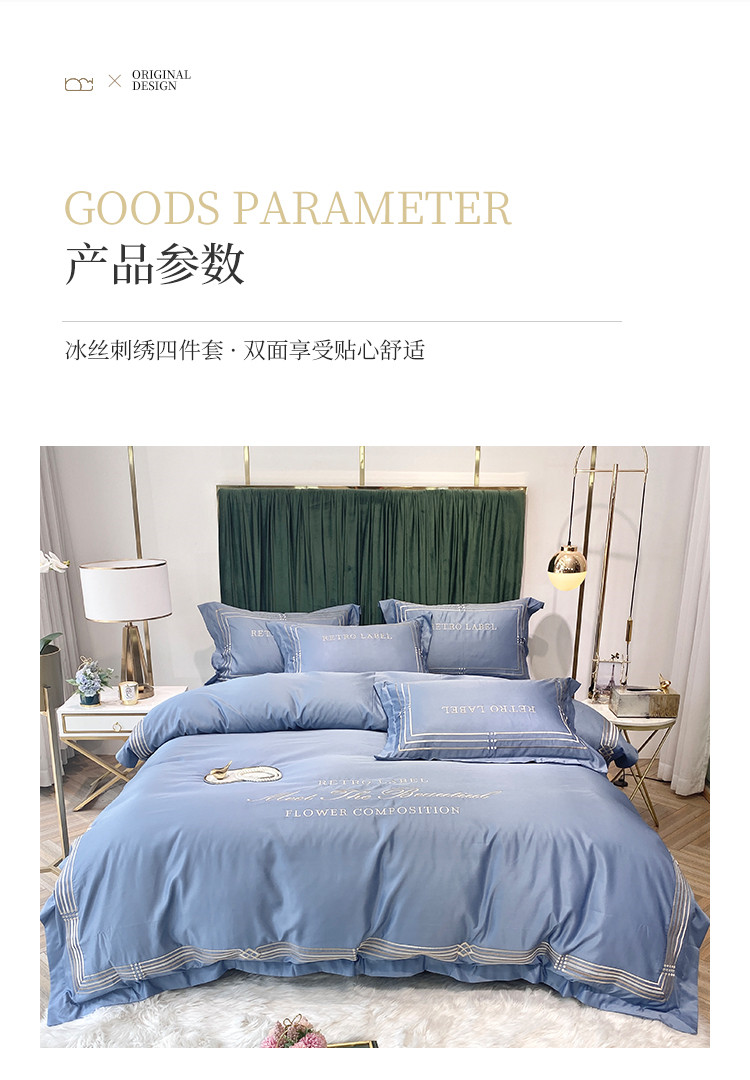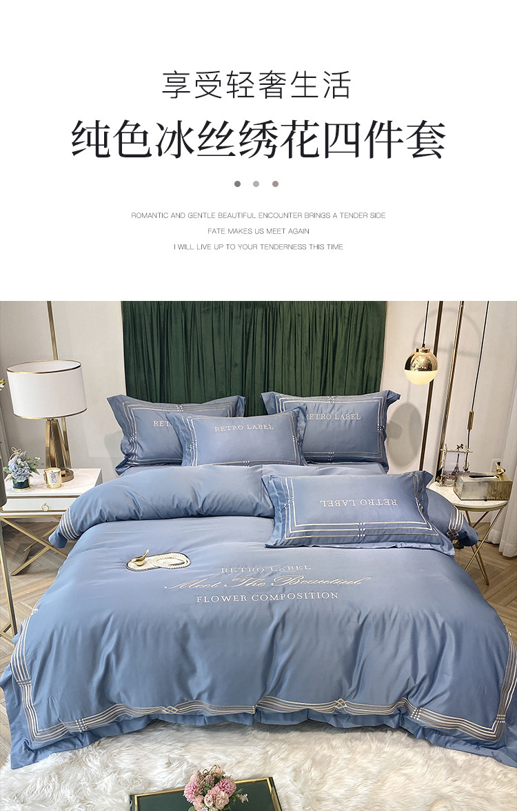 商品名称:理想家 2020新款纯色冰丝绣花四件套艾欧斯系列 兰灰