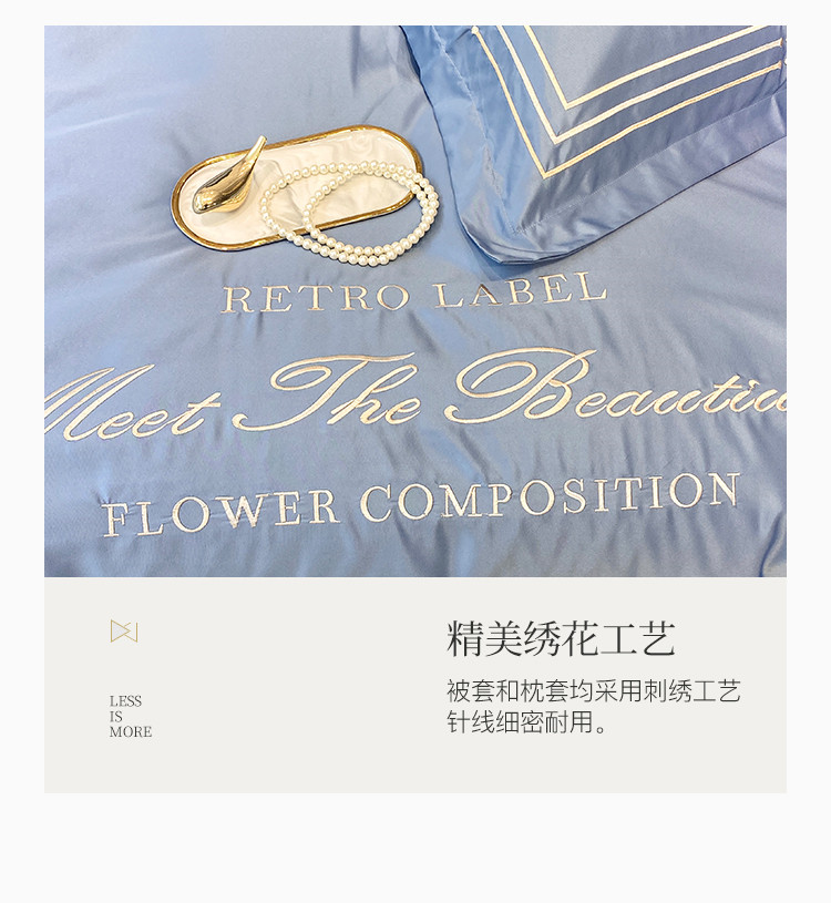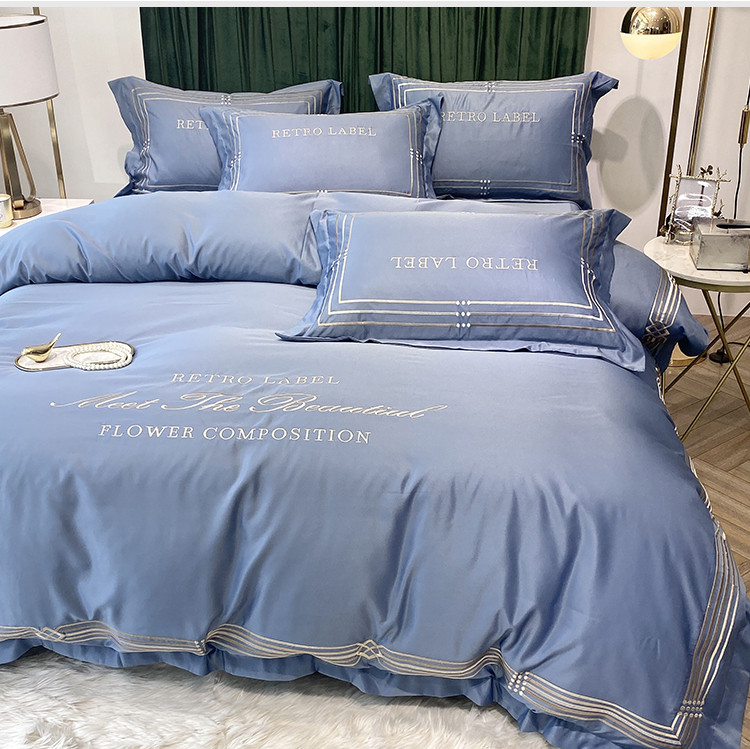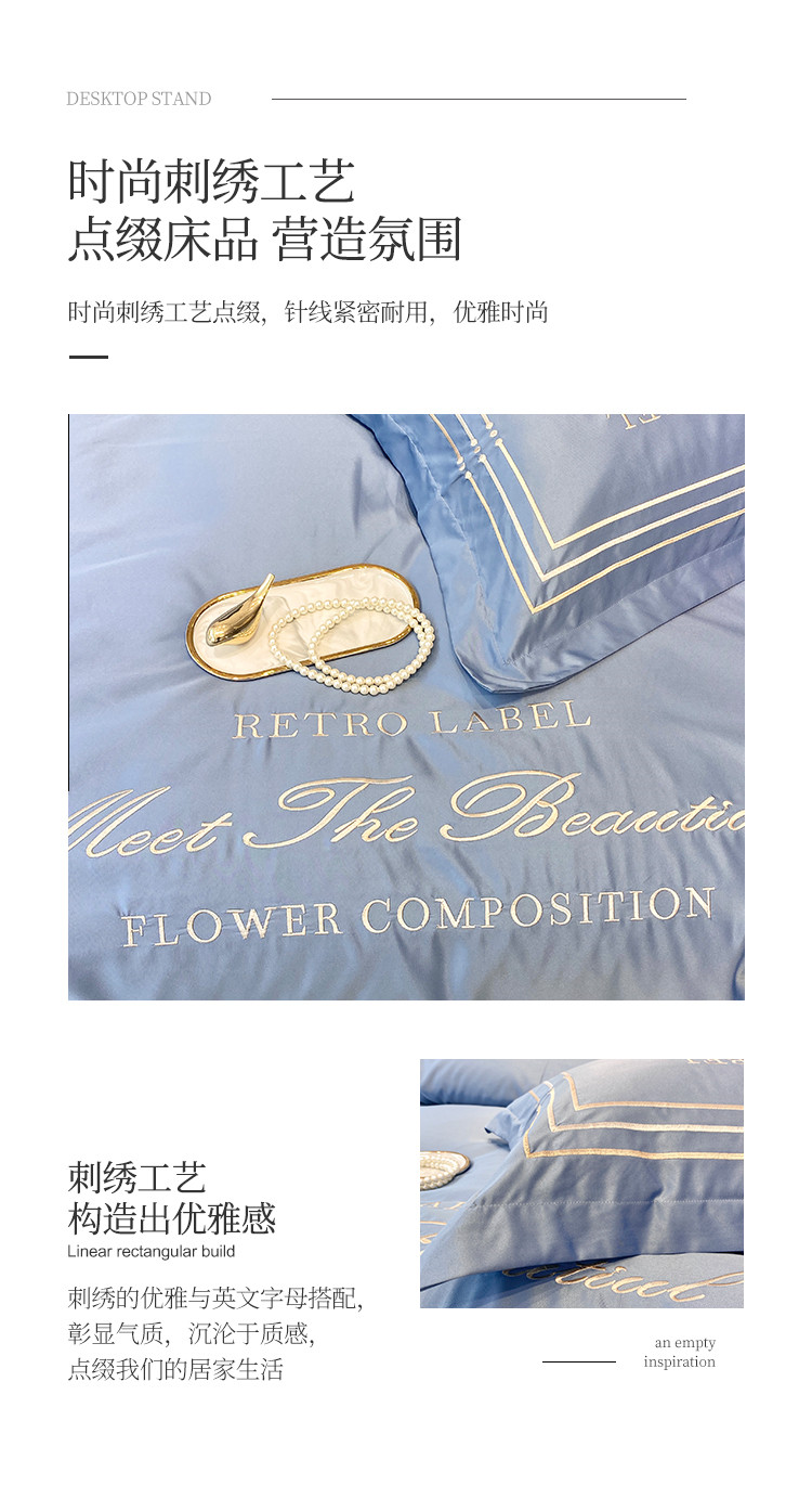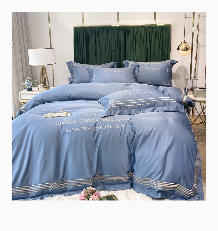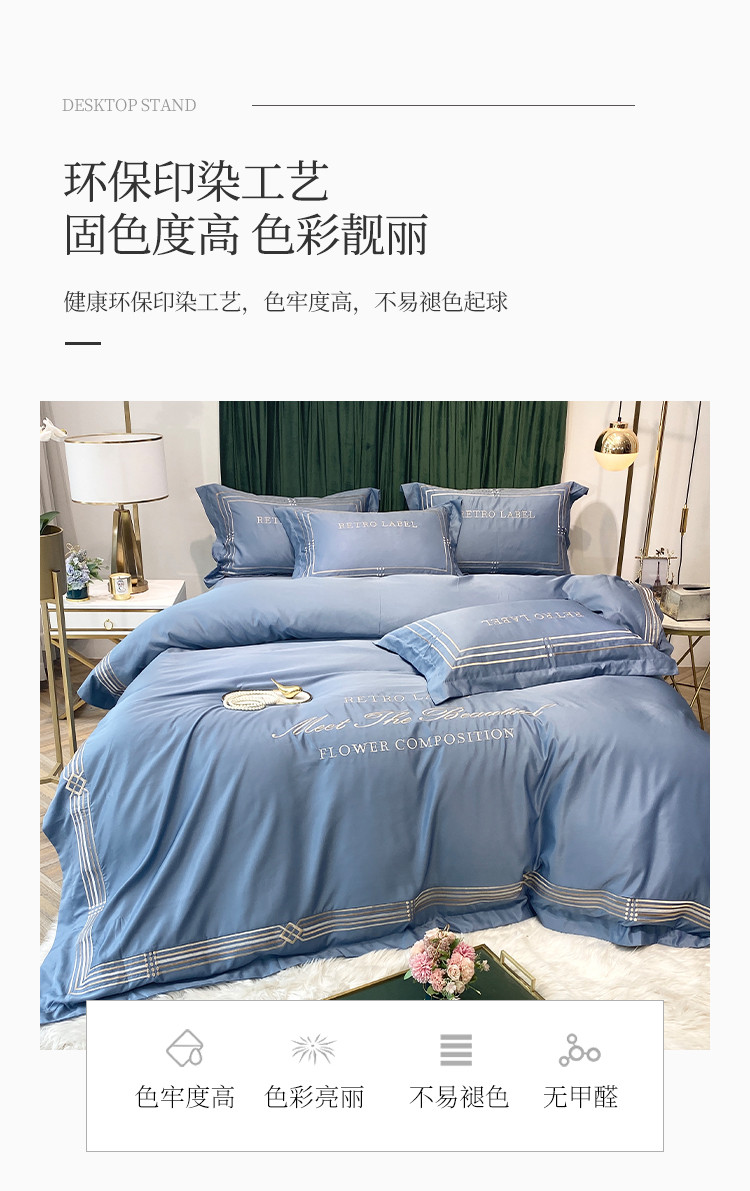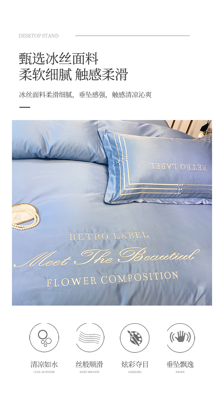 商品名称:理想家 2020新款纯色冰丝绣花四件套艾欧斯系列 兰灰