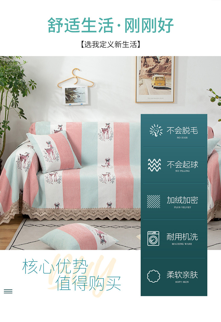 当前位置: 91家纺网 > 商品网购 > 居家布艺 > 坐垫/椅垫/沙发垫 > 沙发垫 > 启博 2022全盖雪尼尔沙发巾沙发垫沙发套沙发罩 粉蓝小鹿