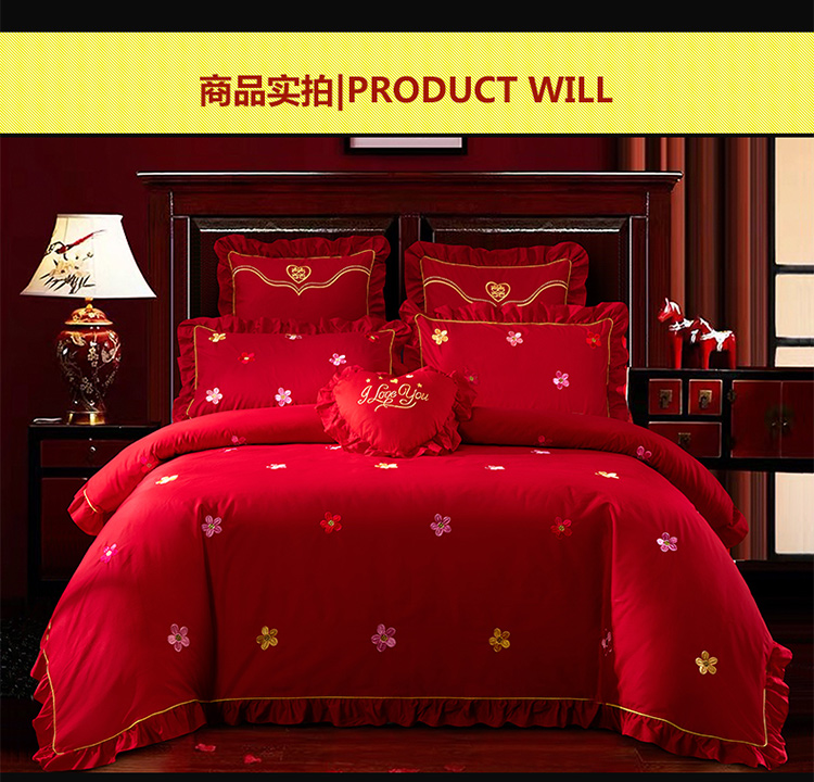 (总)婚庆四件套大红色刺绣结婚六七件套多件套喜庆婚被床上用品,恩恩爱爱,双喜情缘,爱的约定,玫瑰情缘,幸福如意,一见钟情,百年同心,浪漫旅行,盛世庄园大红,鸳鸯同心,张灯结彩,天作之合,花好月圆,米兰风情,喜笑颜开,天缘巧合,幸福满园,龙凤传情,盛世龙凤