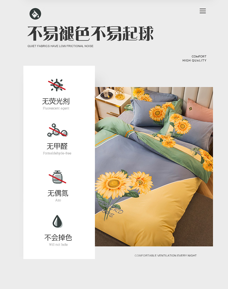 3、通州区市场监督局友情提醒,近期涉及到床上用品不褪色不掉毛不缩水的投诉和以世界知名品牌图案为面料的床品举报较多。请各商家自检自查,对照整改或进行下架处理。