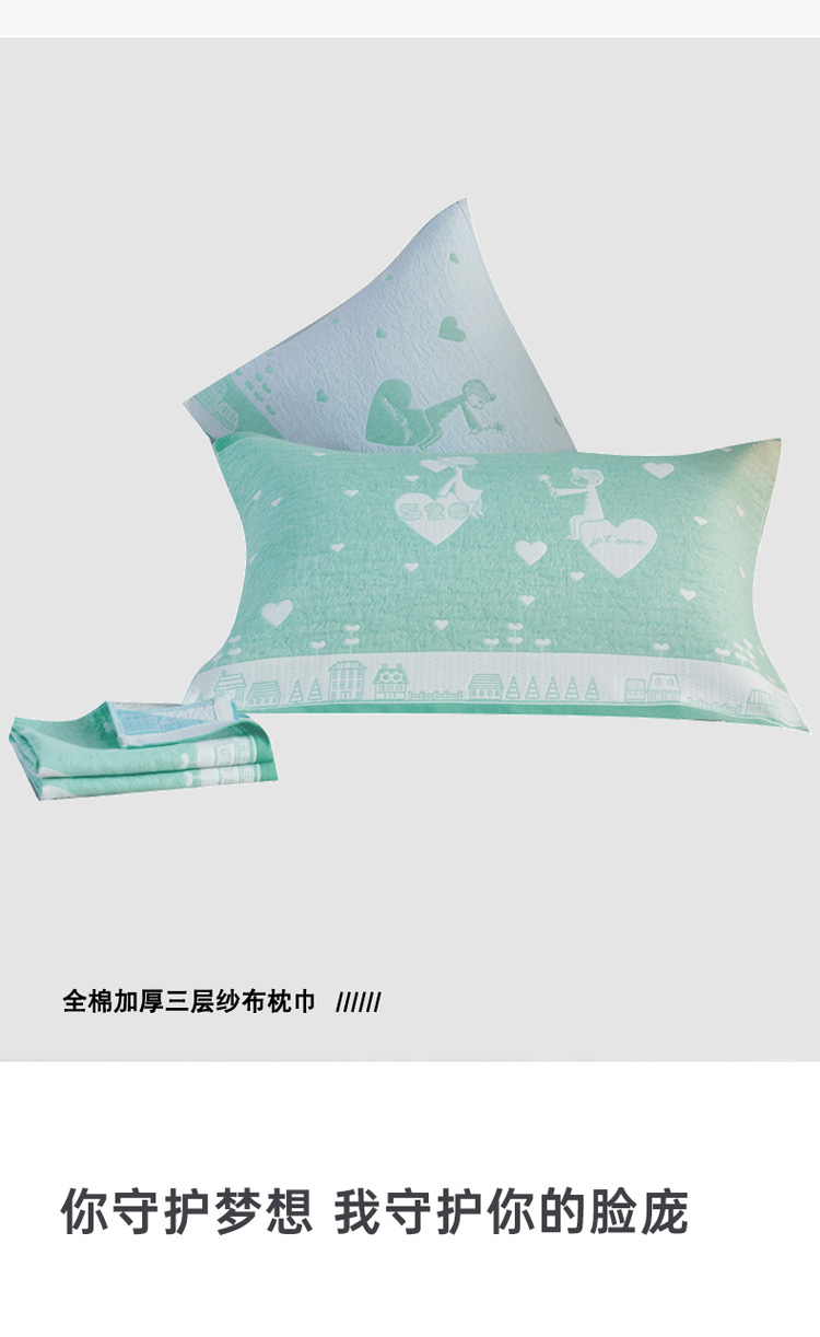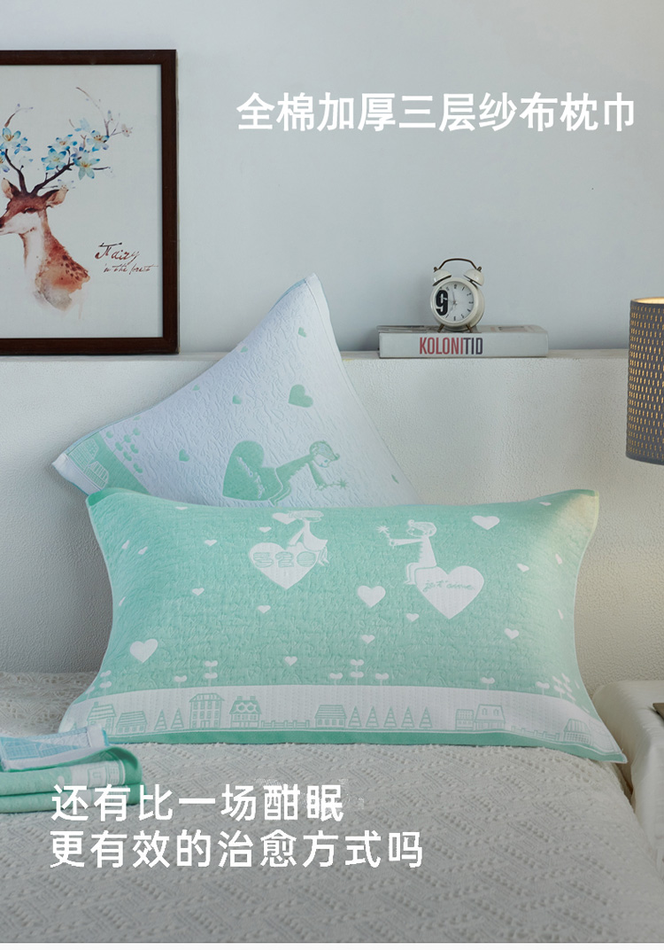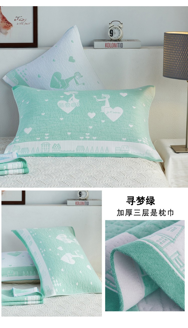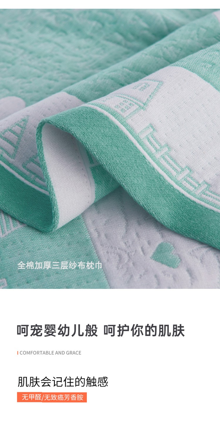 • 91家纺网 家纺一手货源 找家纺 朴尔 2020新款全棉加厚三层纱布枕巾 寻梦绿