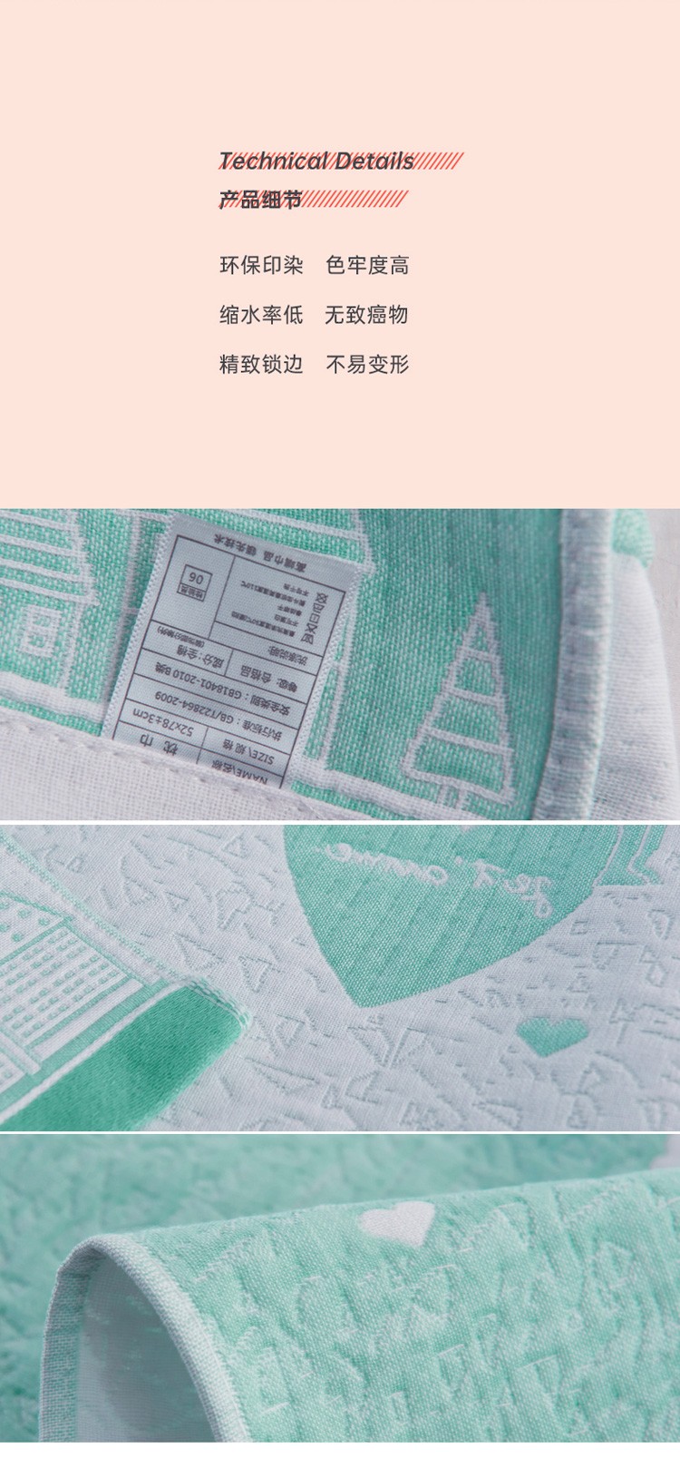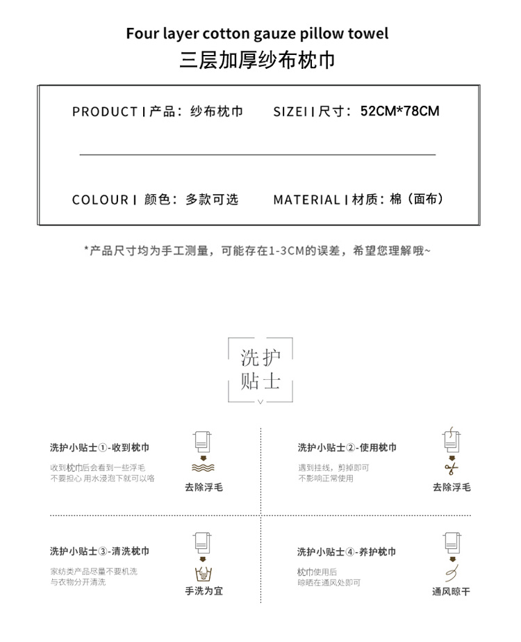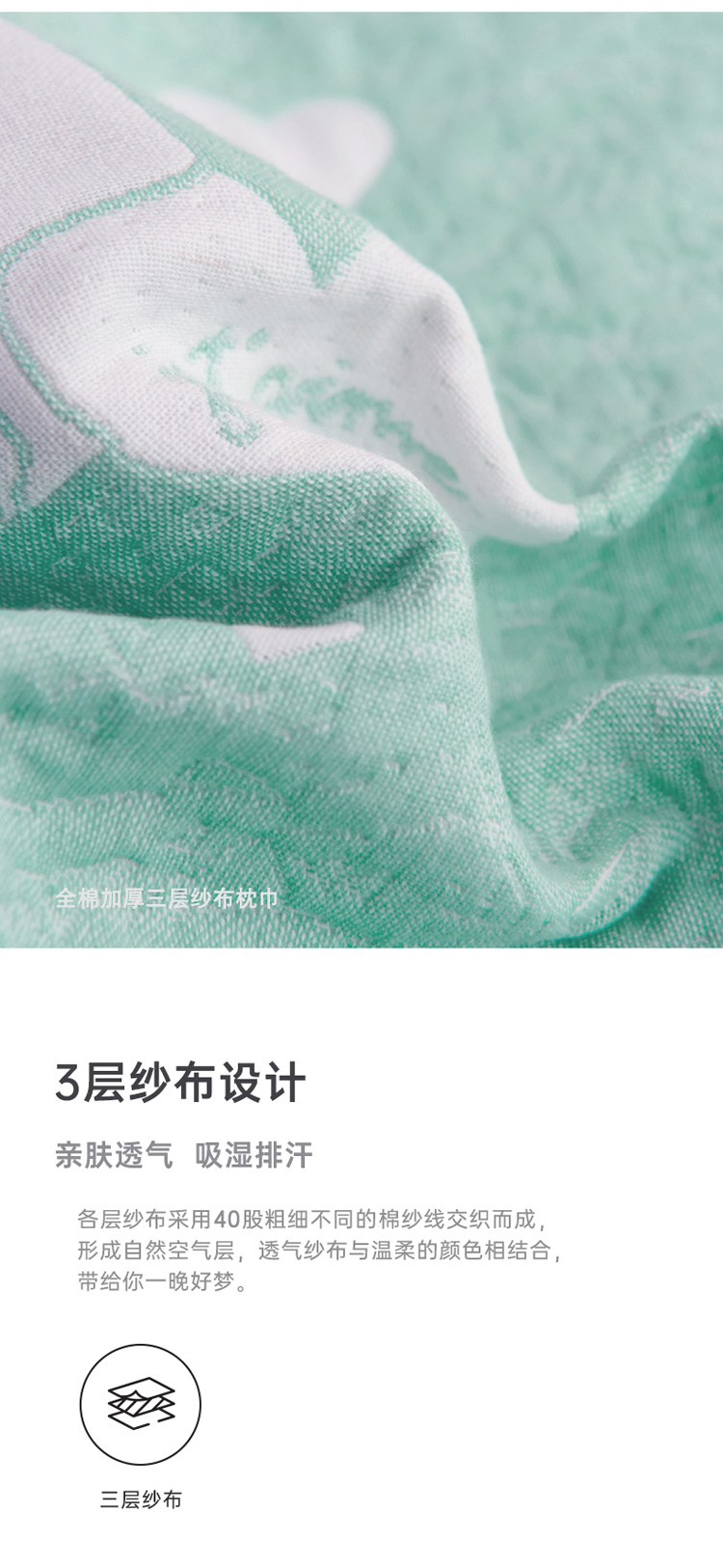 • 91家纺网 家纺一手货源 找家纺 朴尔 2020新款全棉加厚三层纱布枕巾 寻梦绿