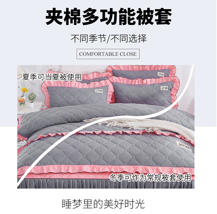 艾裙海 2025新款床裙款全夹棉四件套 玉拼灰