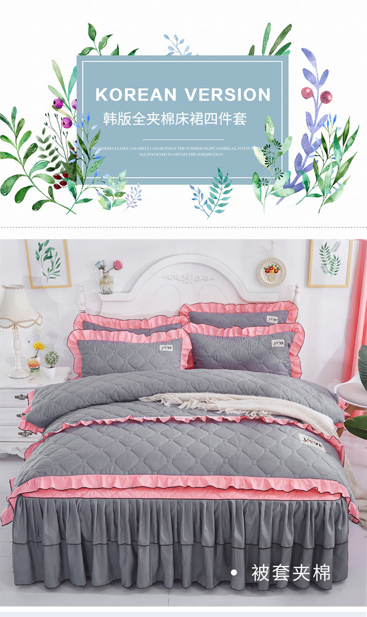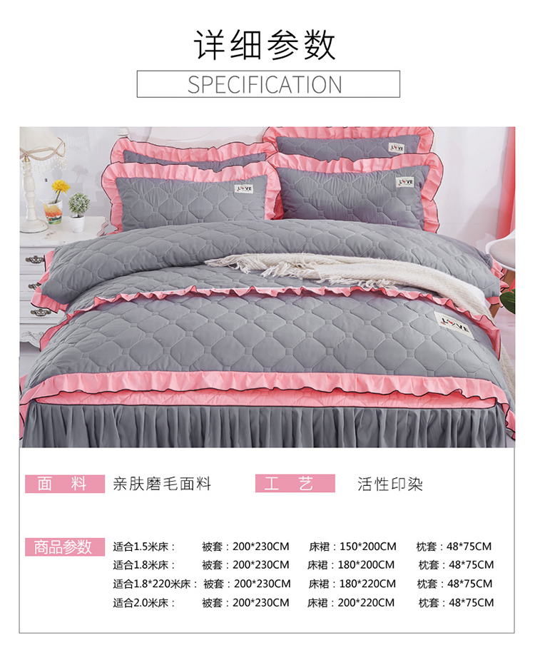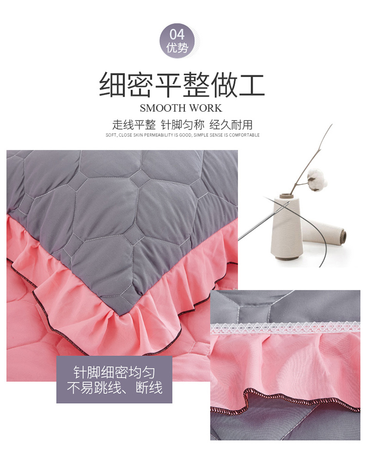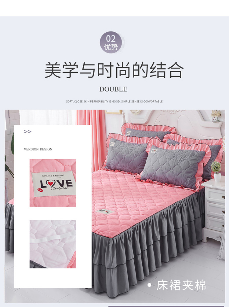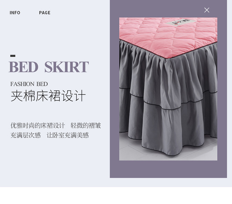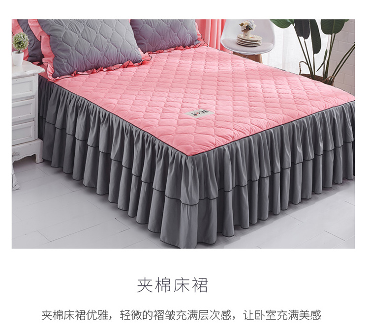 (总)艾裙海 2025新款90克磨毛夹棉绗缝床裙,粉色,大红色,米白色,深灰色,紫色,藏青色,宝蓝色,浅灰色,粉玉色,豆沙红