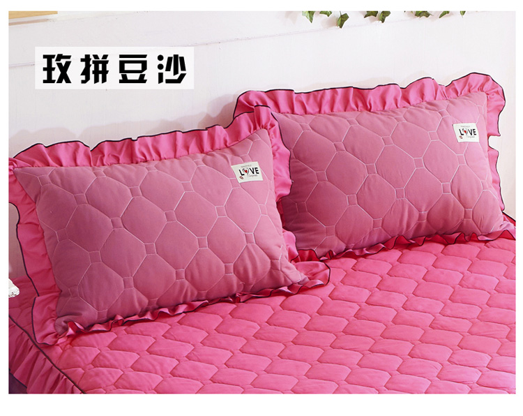 (总)艾裙海 2025新款90克磨毛夹棉绗缝床裙,粉色,大红色,米白色,深灰色,紫色,藏青色,宝蓝色,浅灰色,粉玉色,豆沙红