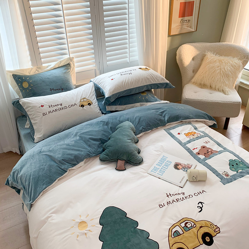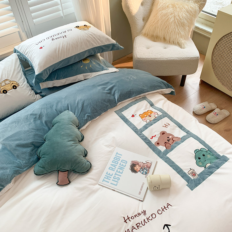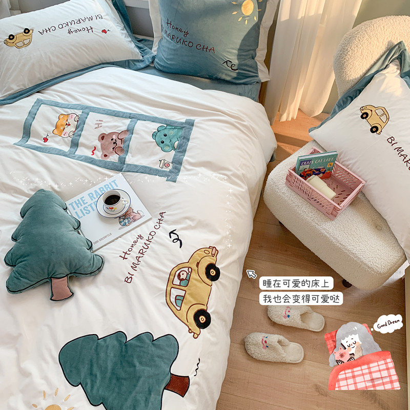 (总)星野 2023秋冬高克重牛奶绒贴布绣多巴胺系列四件套,朵拉拉,洛可可,萌兜兜,小甜甜