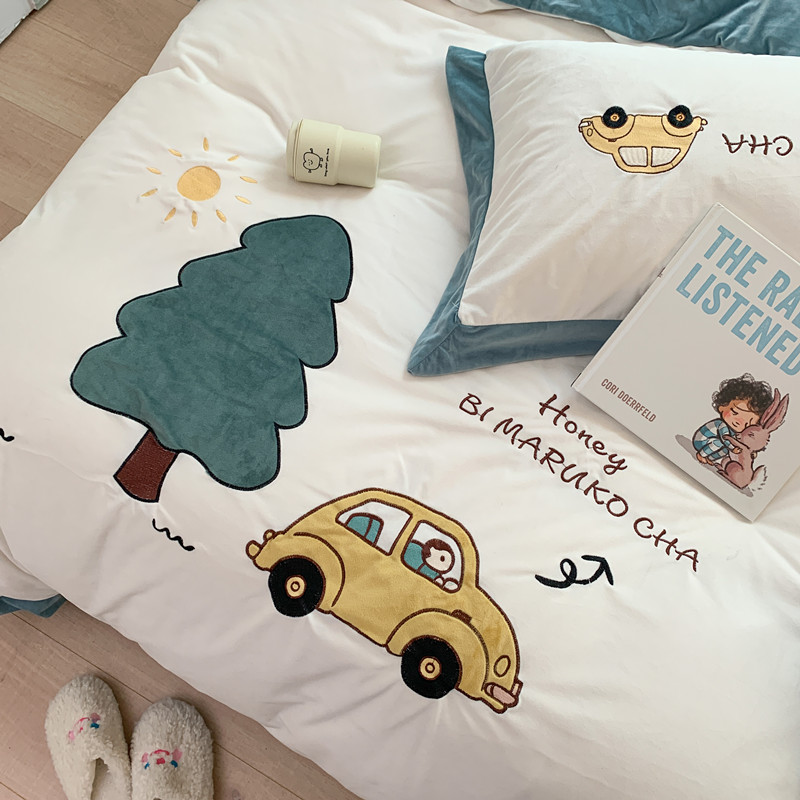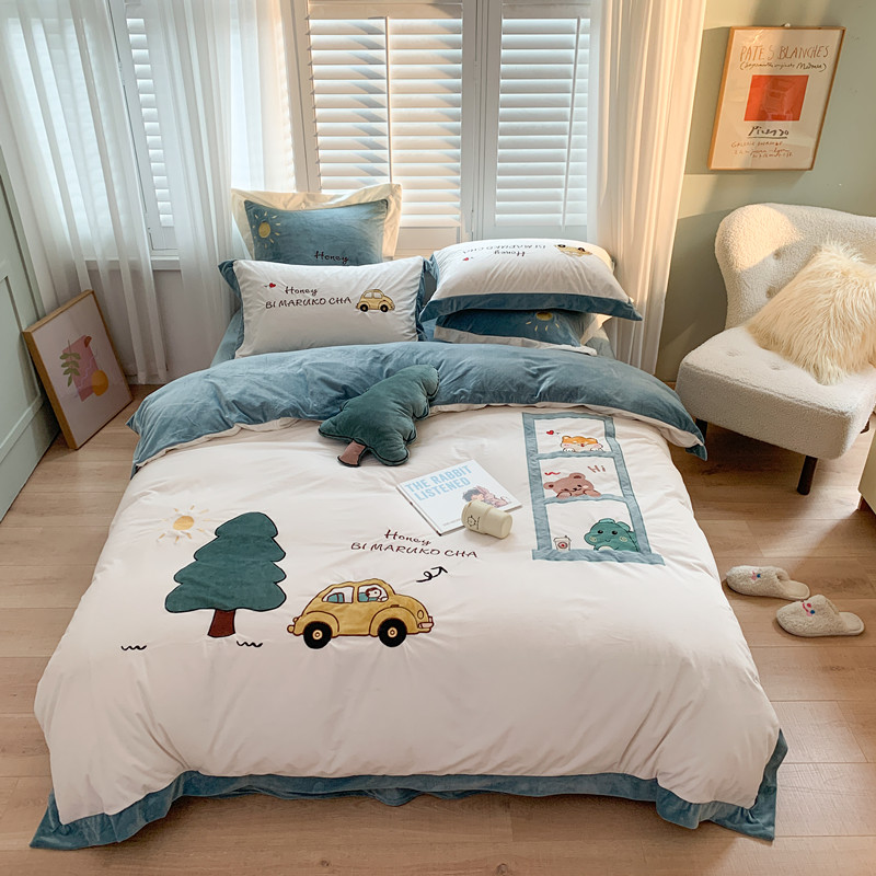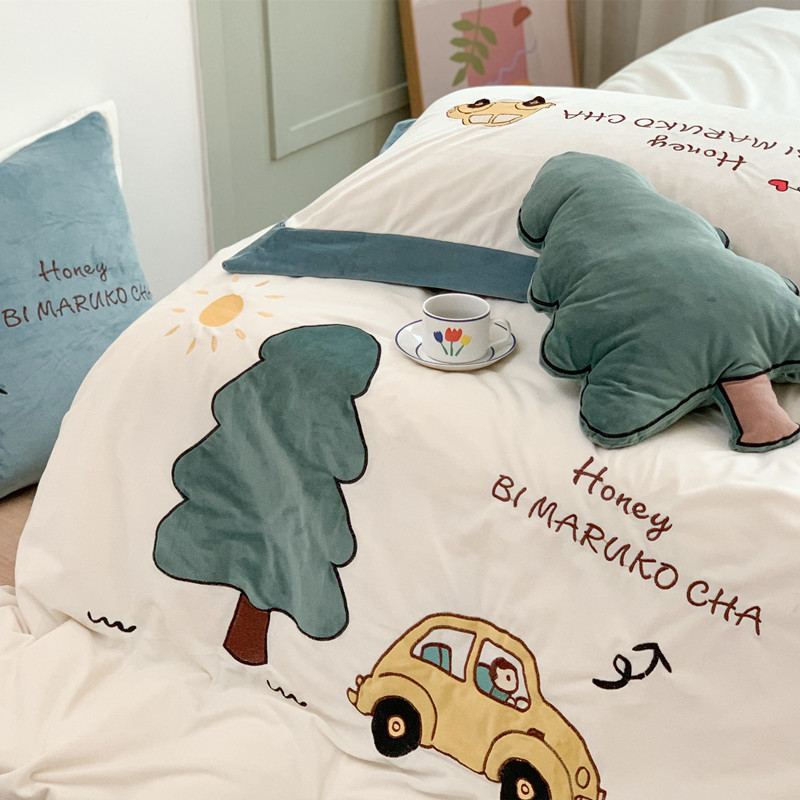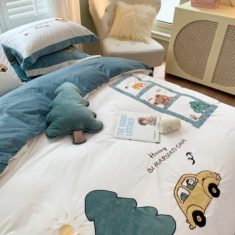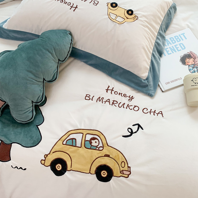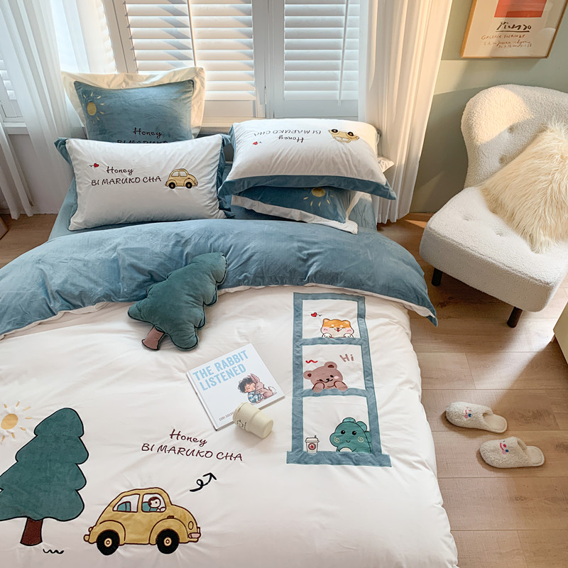 (总)星野 2025新款高克重牛奶绒贴布绣四件套-摇摇乐,摇摇乐