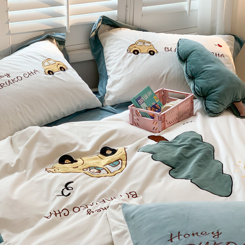 (总)星野 2023新款40s水洗棉贴布绣四件套-多巴胺女孩,多巴胺女孩