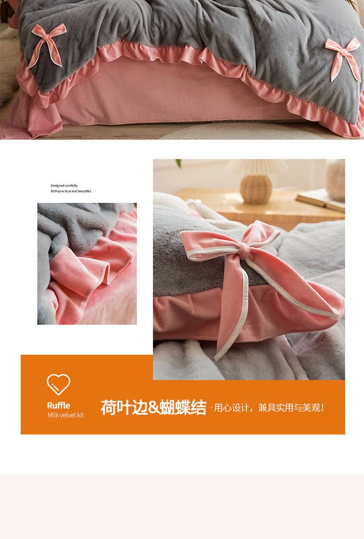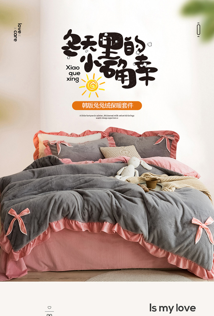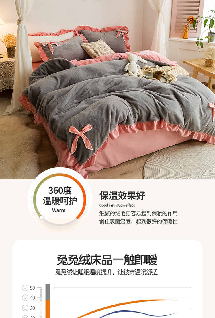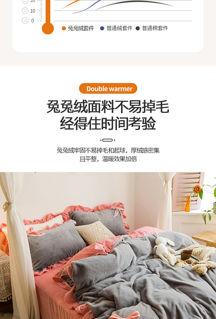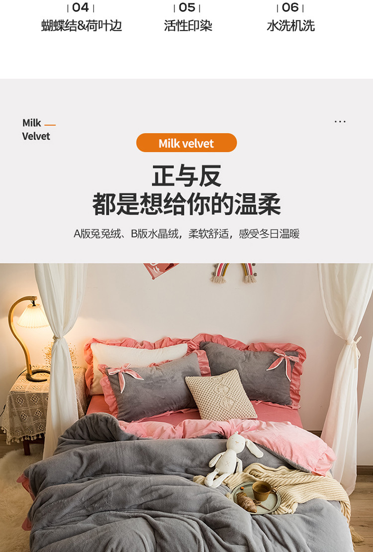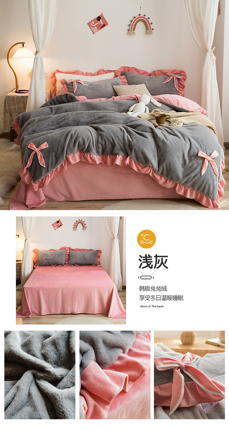 商品名称:琪格格 2020新款兔兔绒荷叶边四件套 兔兔绒韩版浅灰