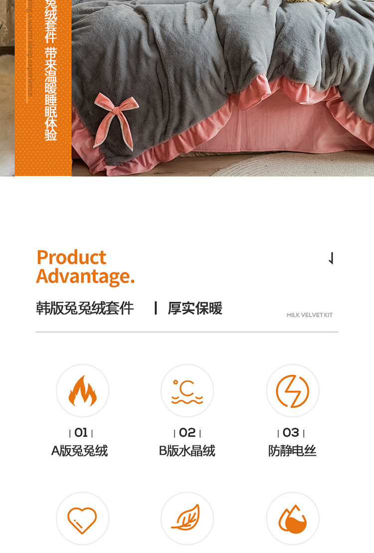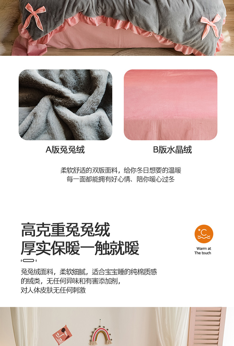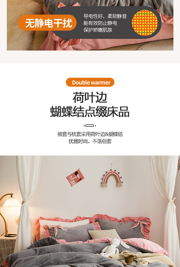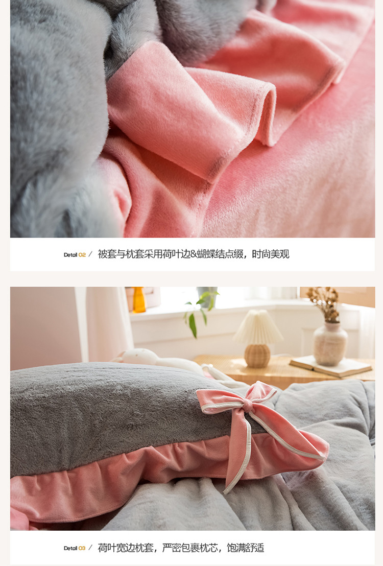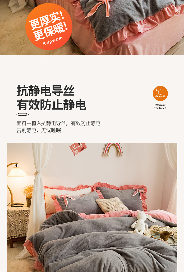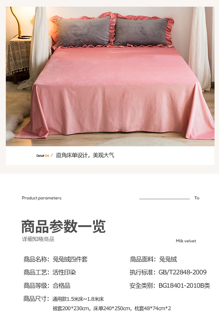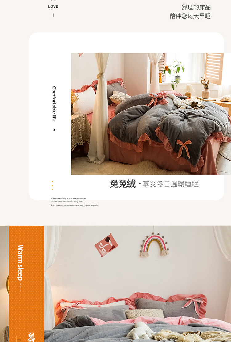 商品名称:琪格格 2020新款兔兔绒荷叶边四件套 兔兔绒韩版浅灰