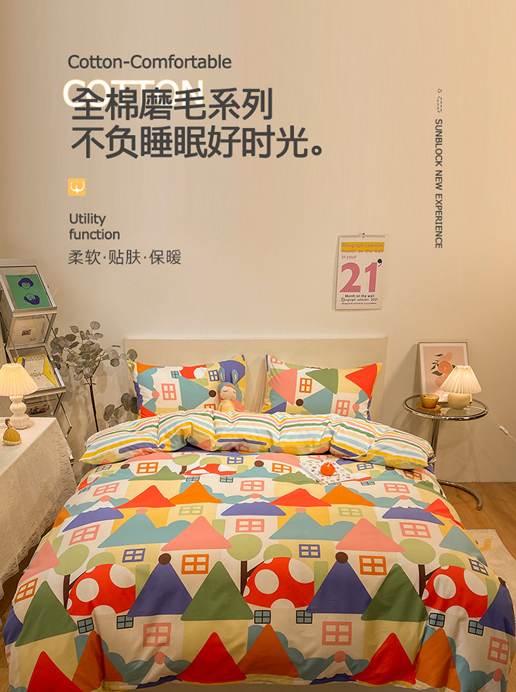 当前位置: 91家纺网 > 商品网购 > 床品套件 > 四件套 > 普通磨毛四件套 > 琪格格 2022新款全棉加厚磨毛四件套 铅笔屋