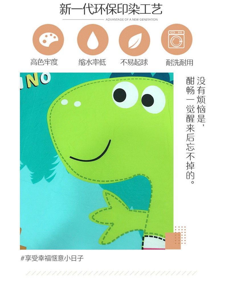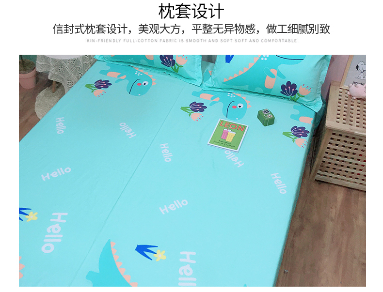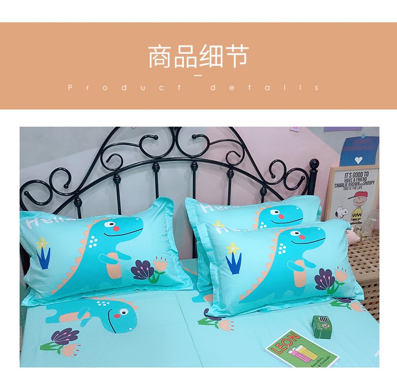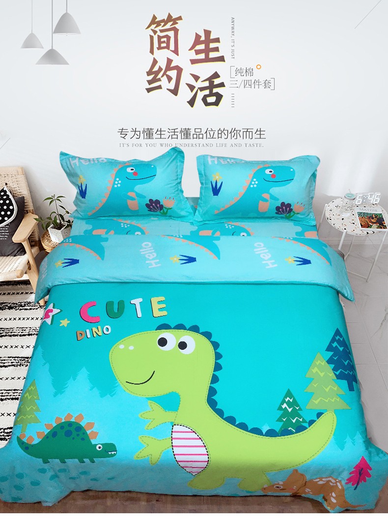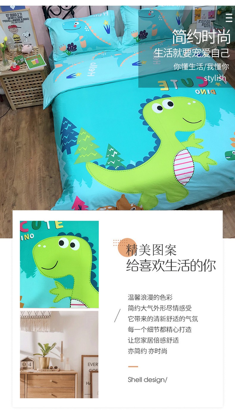 商品名称:金爱家 2021新款13070卡通全棉四件套 独家恐龙森林绿