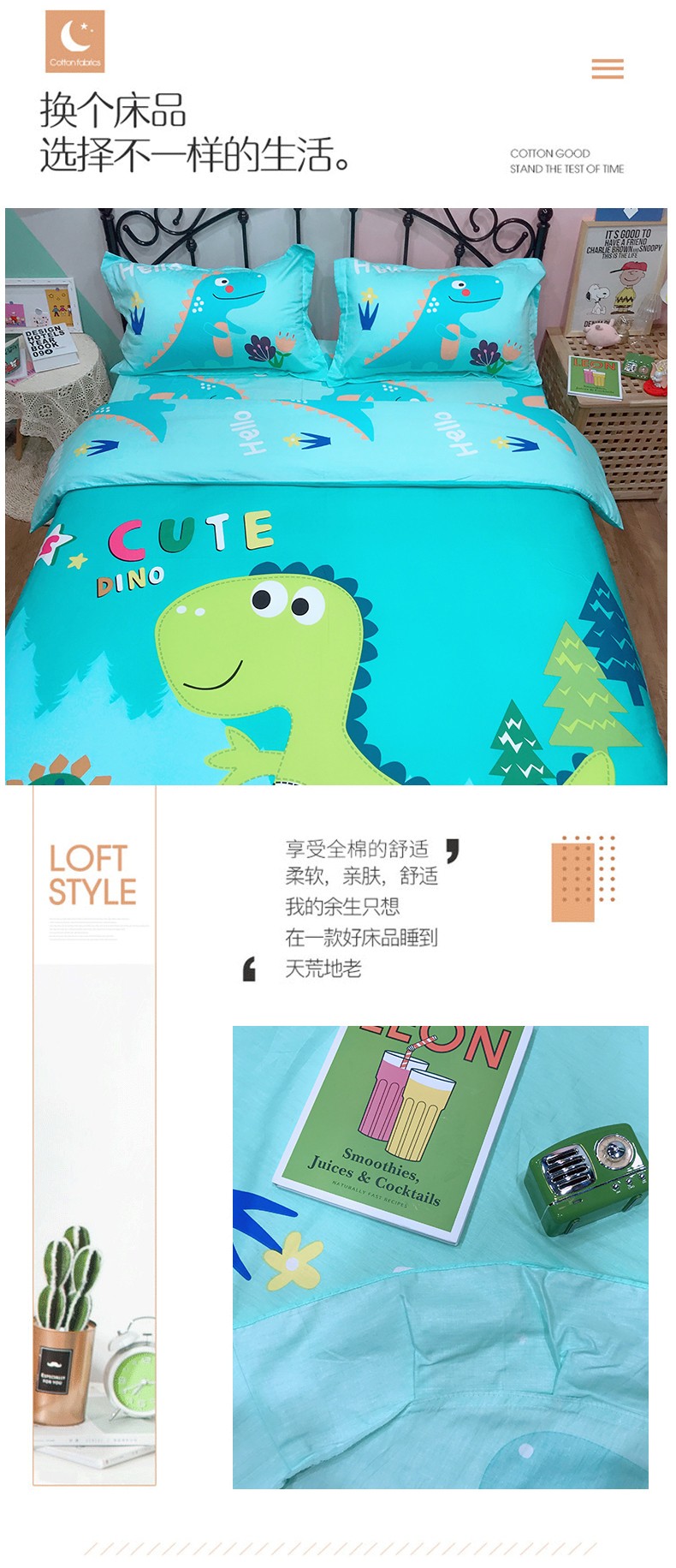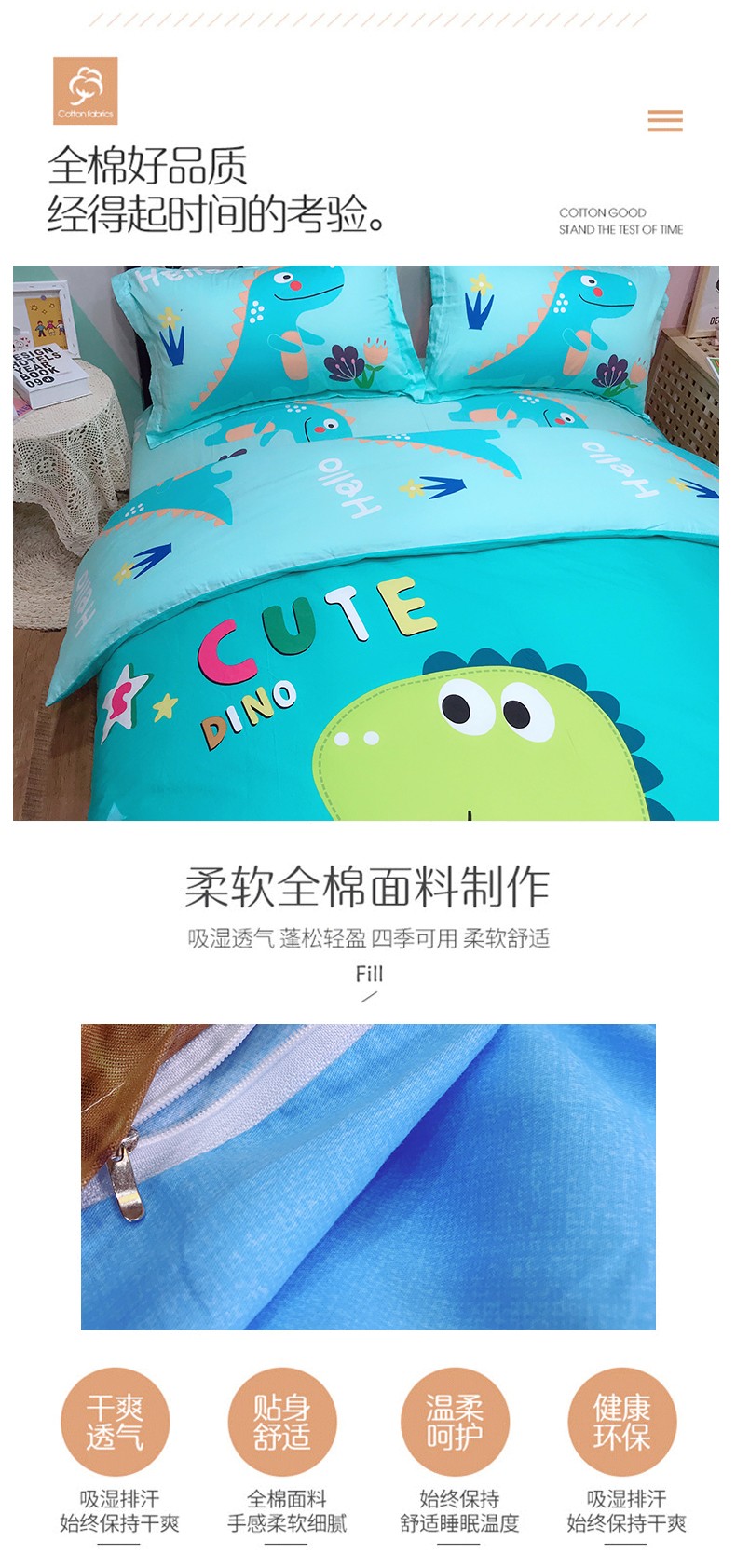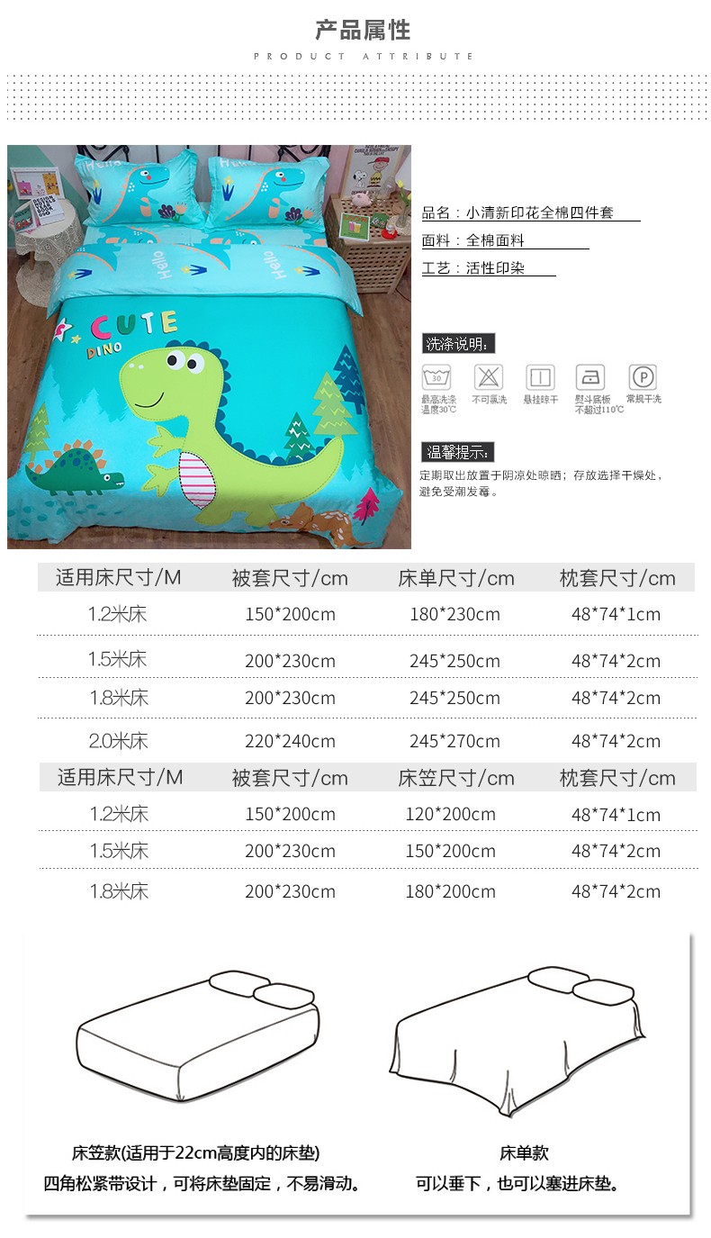 商品名称:金爱家 2021新款13070卡通全棉四件套 独家恐龙森林绿