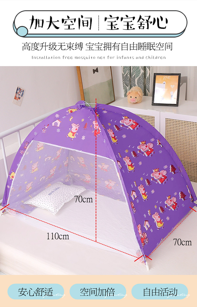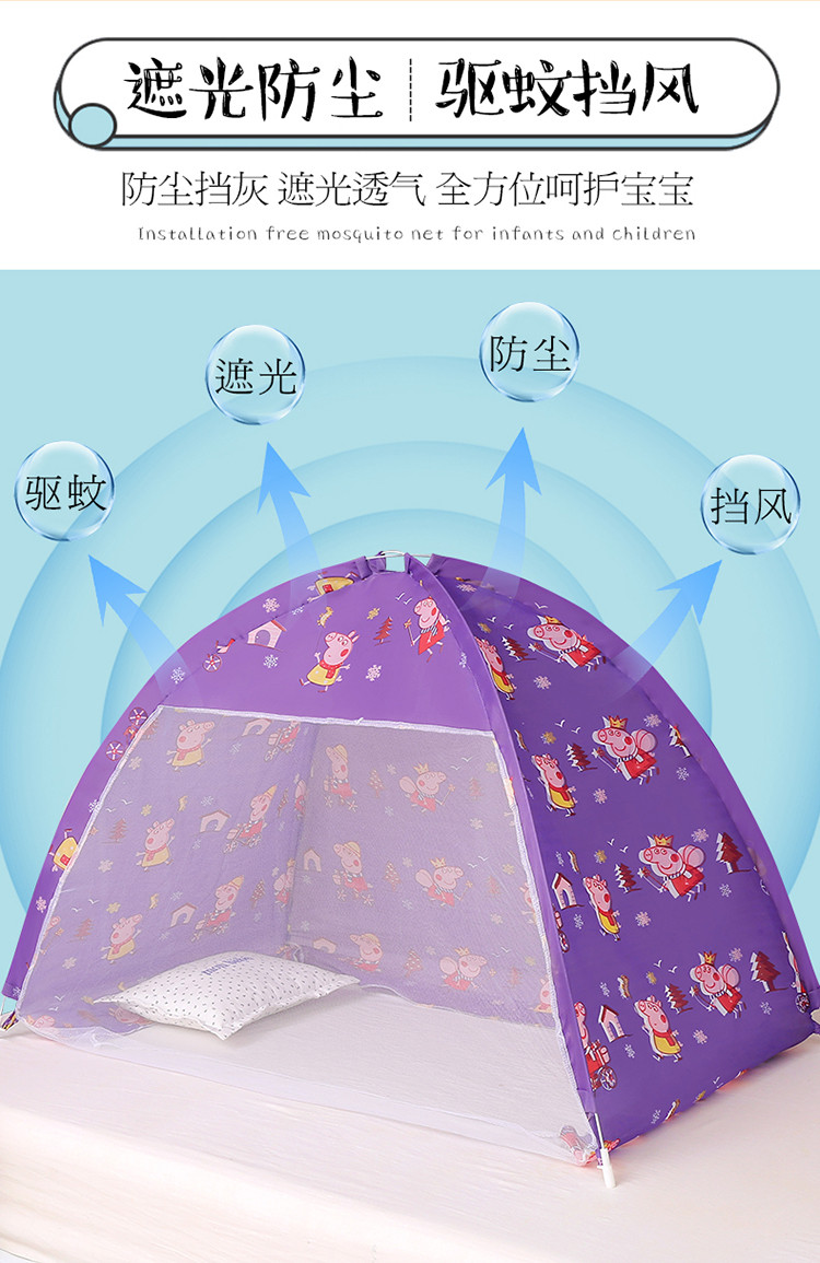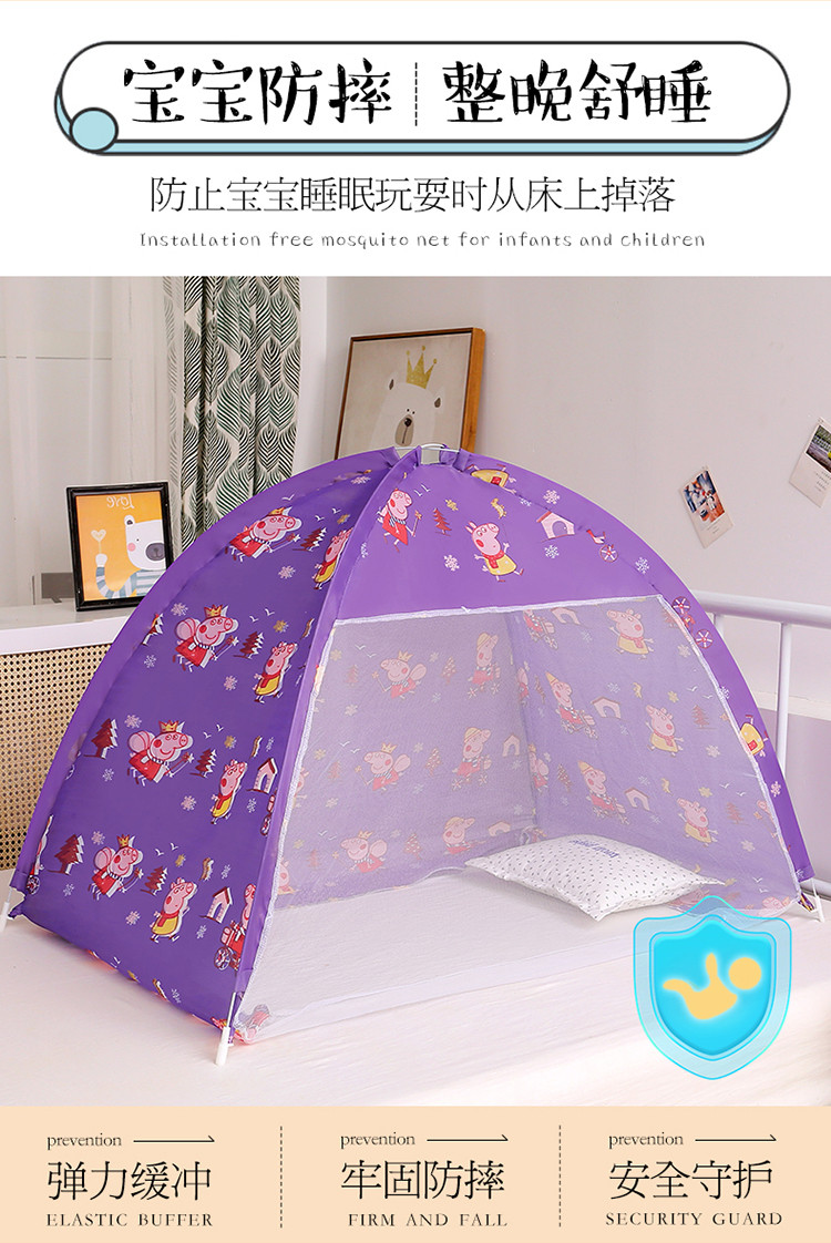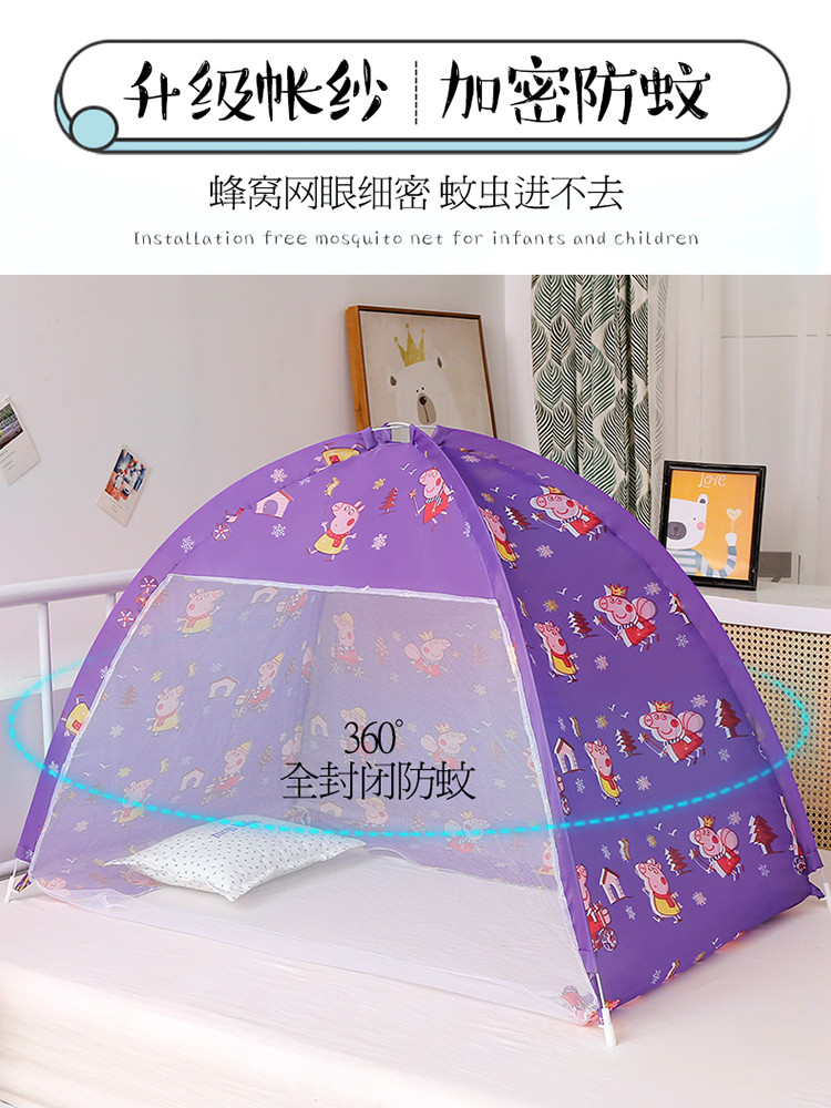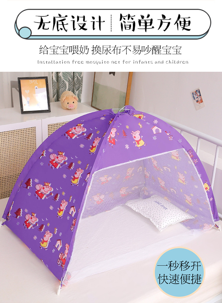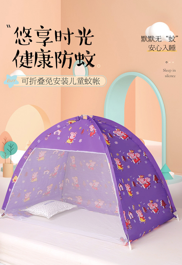 博诺蚊帐 2021新款防尘顶儿童蚊帐 紫色佩奇