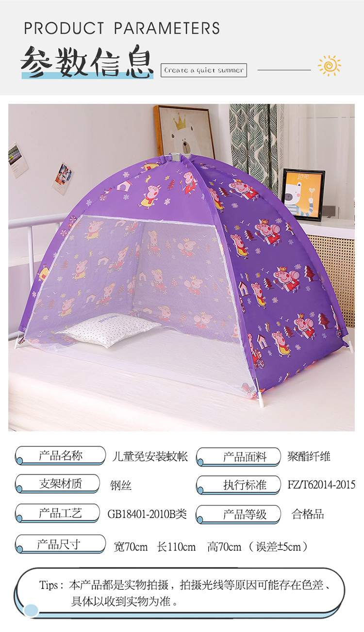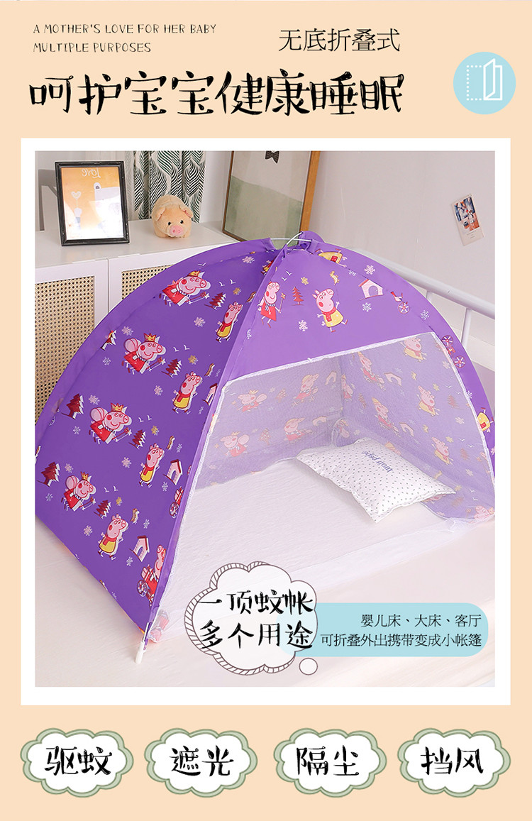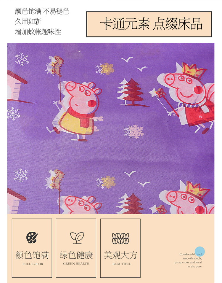 商品名称:博诺蚊帐 2021新款防尘顶儿童蚊帐 紫色佩奇