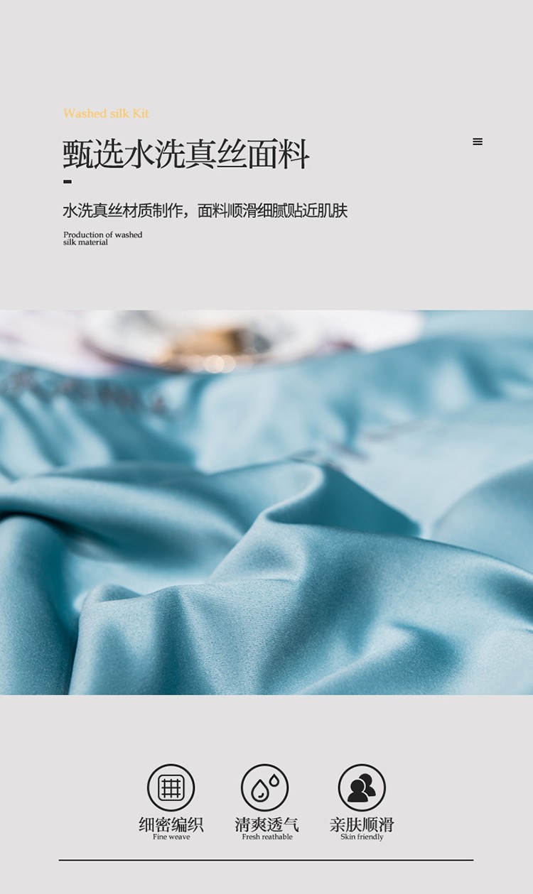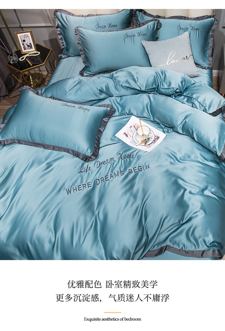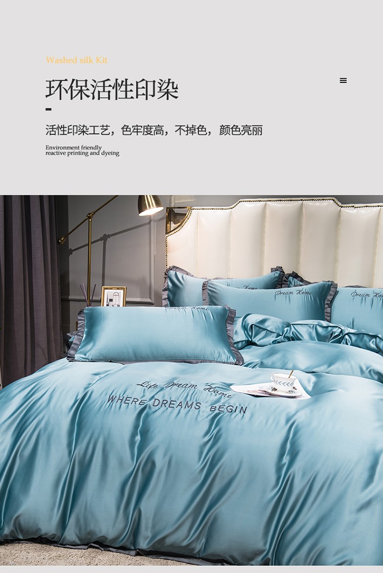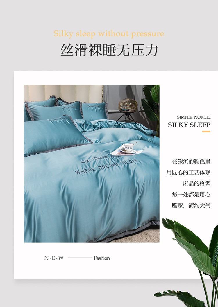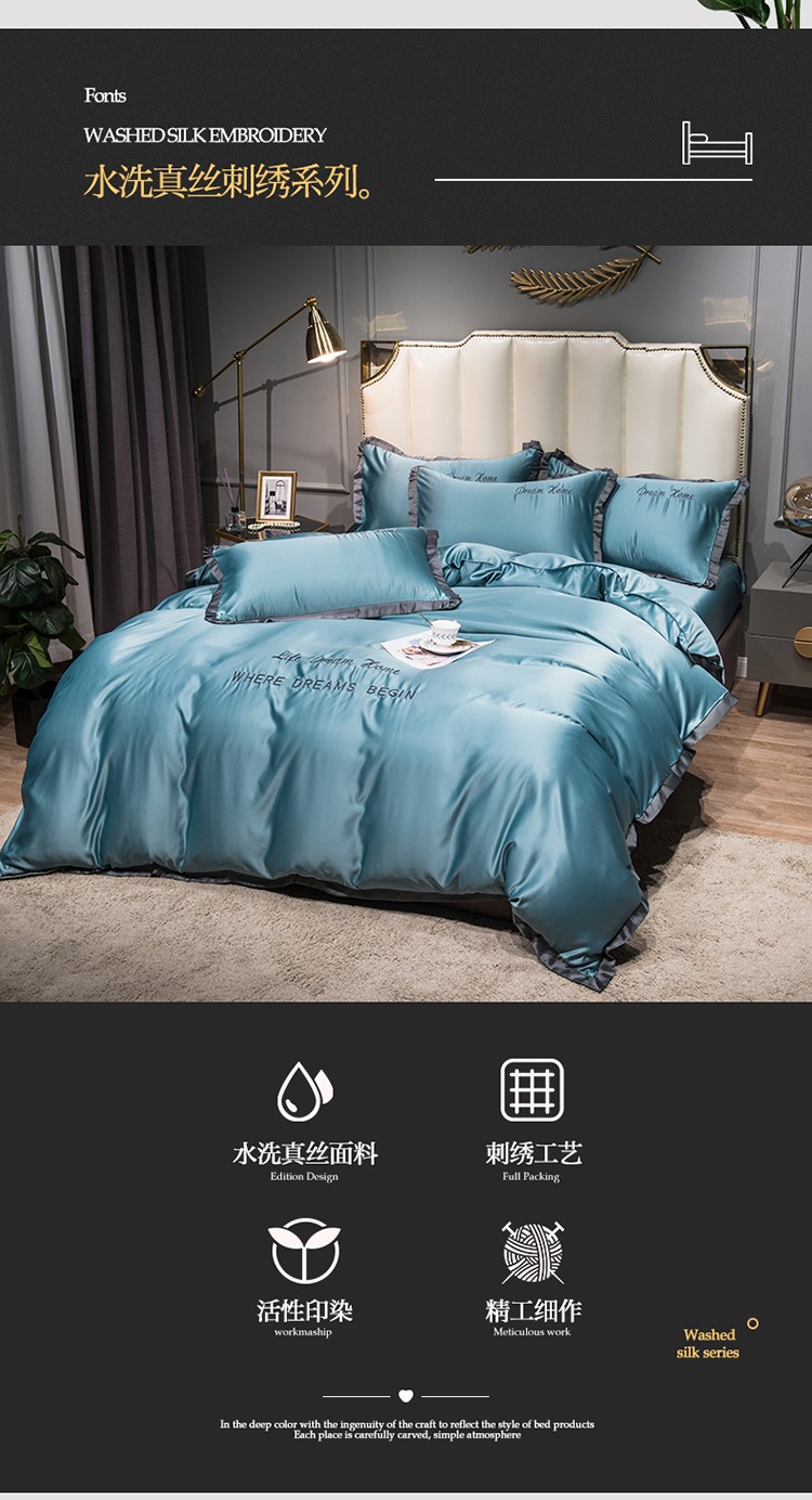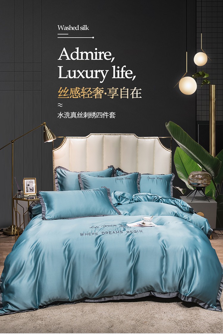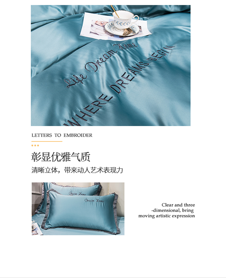 2022简爱水洗天丝绣花四件套水洗真丝三件套 湖蓝