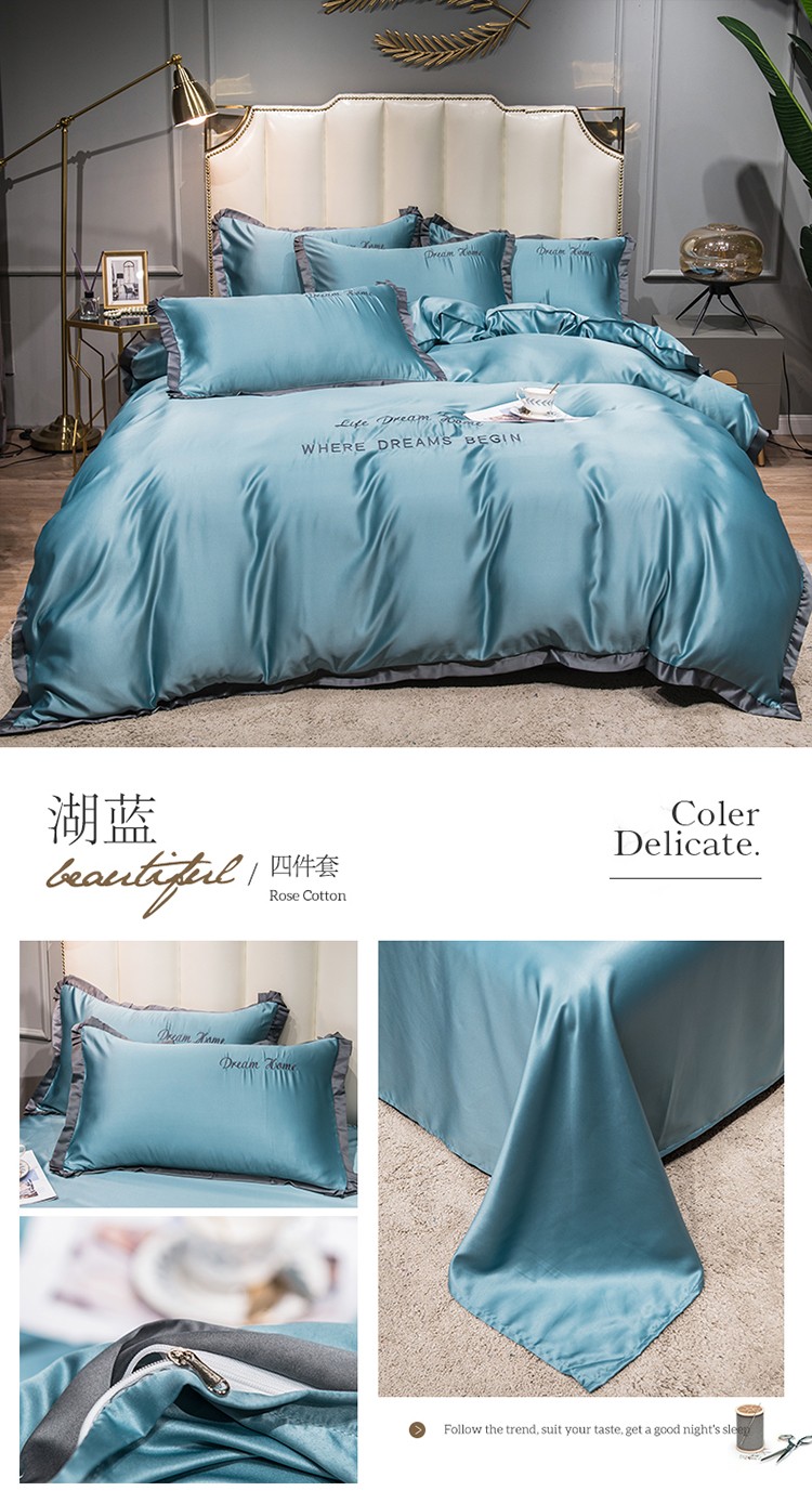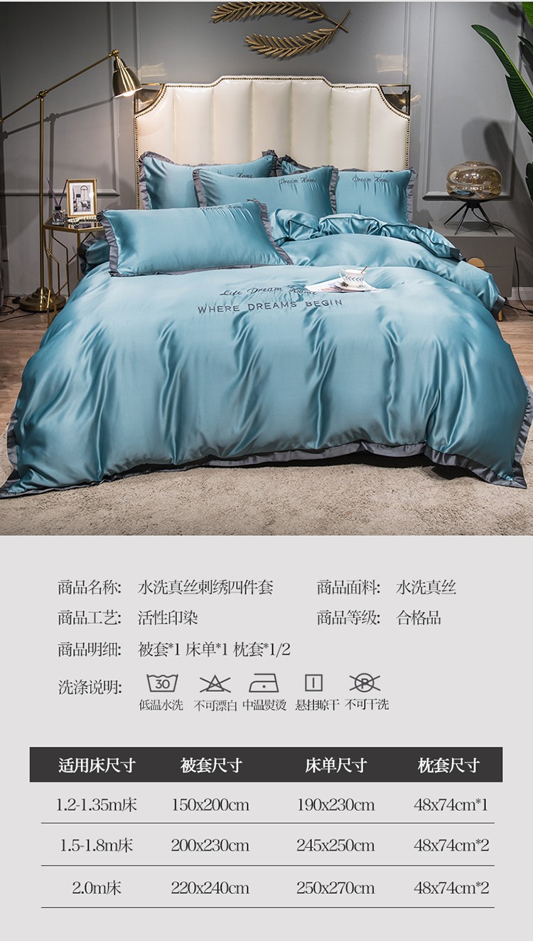 商品名称:2022简爱水洗天丝绣花四件套水洗真丝三件套 湖蓝
