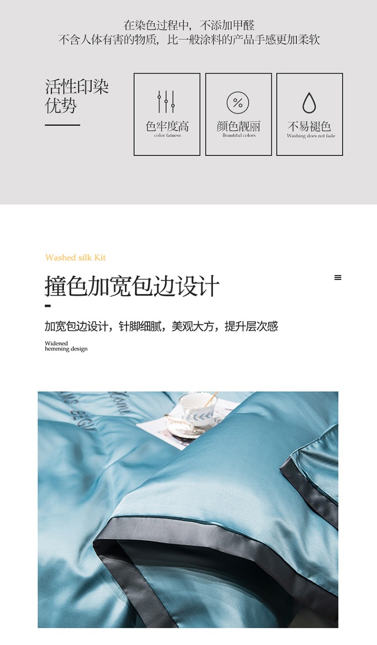 (总)骏腾 2022简爱水洗天丝绣花四件套水洗真丝三件套,宝蓝,湖蓝,酒红,墨绿,深灰,银灰,玉色