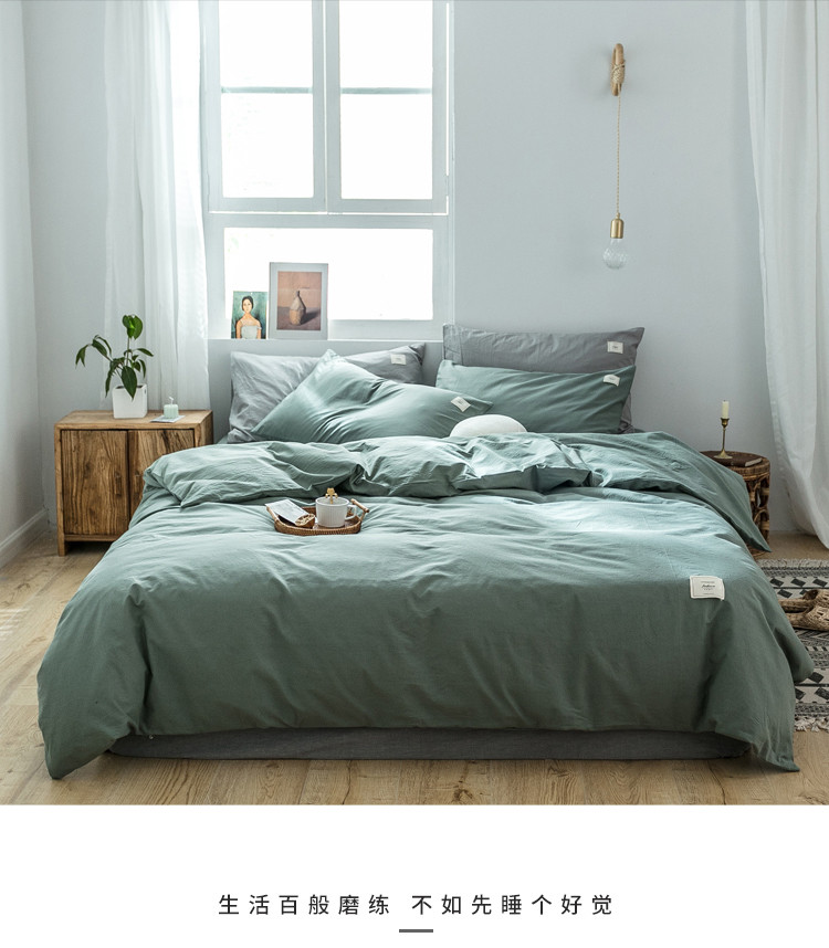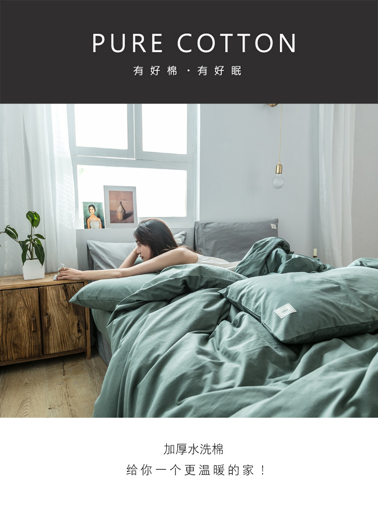 雅居纺 2022新款全棉水洗棉四件套 墨子绿