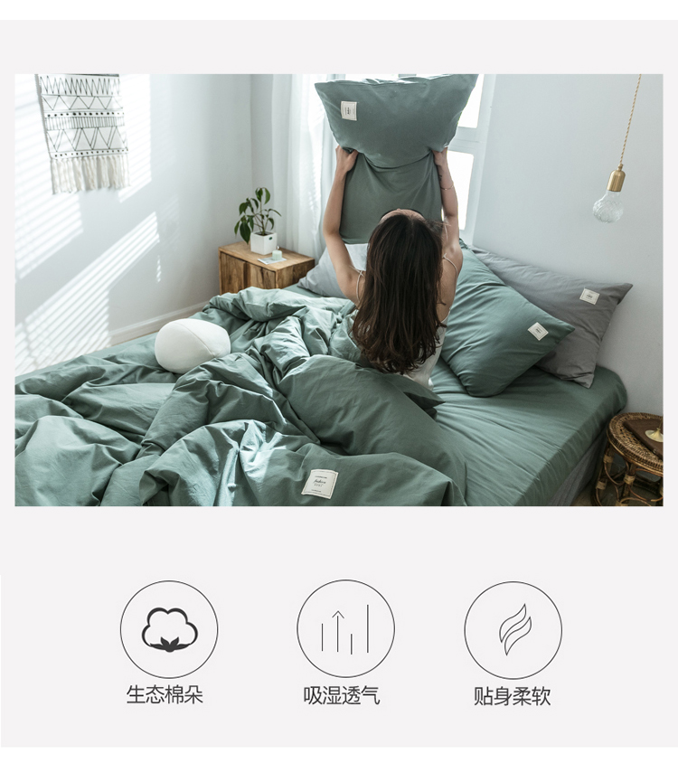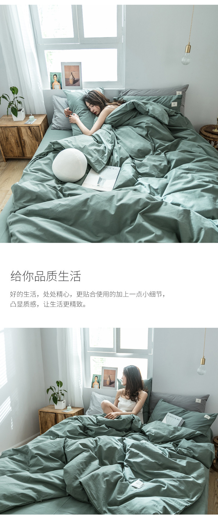 商品名称:雅居纺 2022新款全棉水洗棉四件套 墨子绿