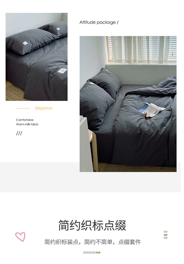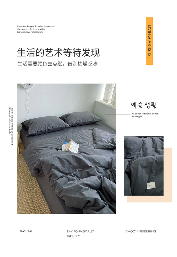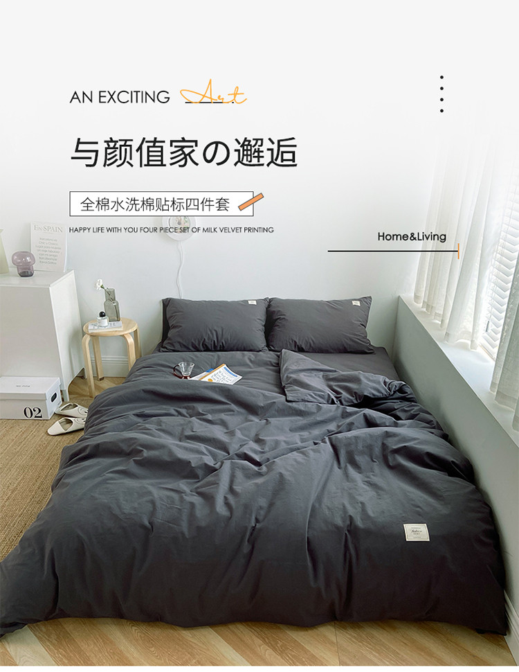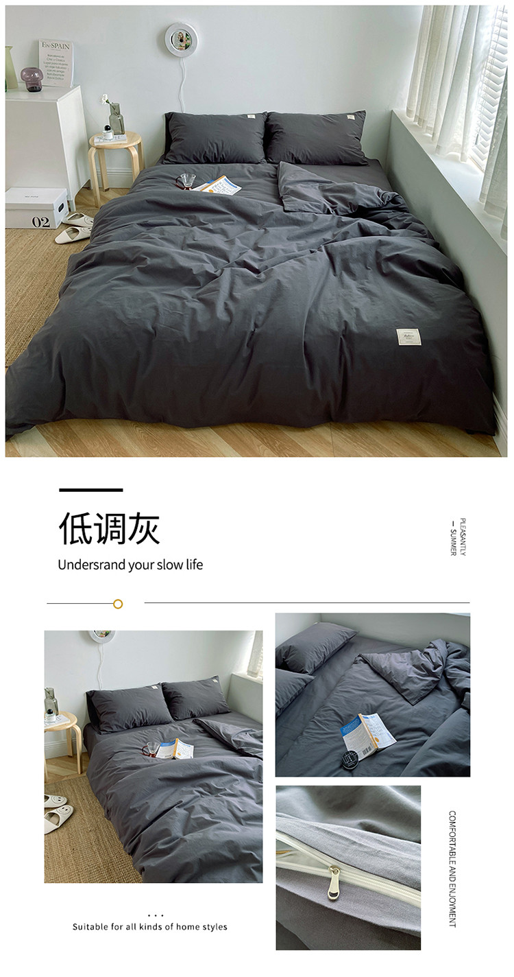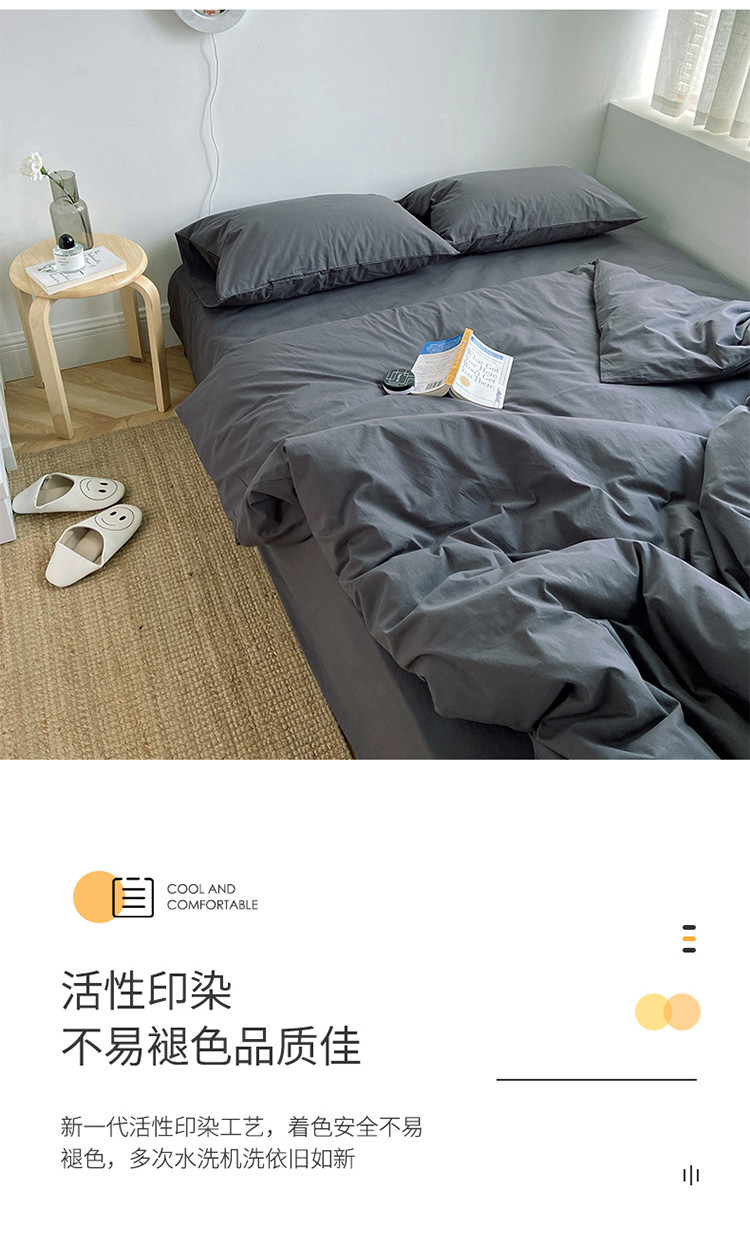 雅居纺家纺 2022新款全棉水洗棉四件套 低调灰