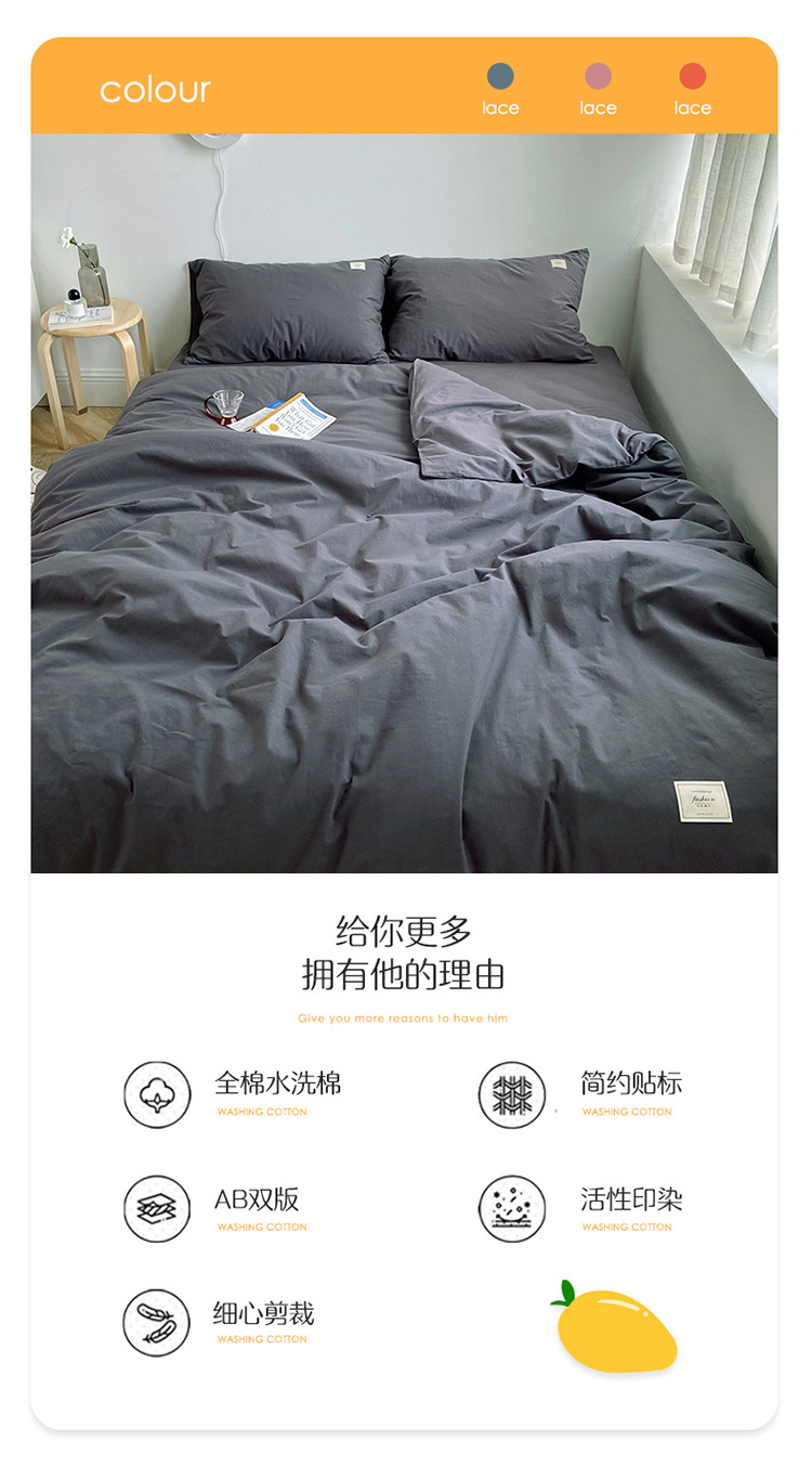(总)雅居纺家纺 2022新款全棉水洗棉四件套,Ins粉蓝,ins浅蓝,白+墨子绿,白+绅士红,低调灰,低调灰绅士灰,豆绿+米黄,复古绿卡其,果绿绅士黄,焦糖咖啡,咖啡+卡其,米黄,米黄+明黄,米黄咖啡,米黄水绿,墨子绿,墨子绿卡其,墨子绿绅士黄,牛仔蓝低调灰,浅蓝深灰,清雅蓝绅士灰,绅士红卡其,绅士黄卡其,绅士灰,新蓝米黄