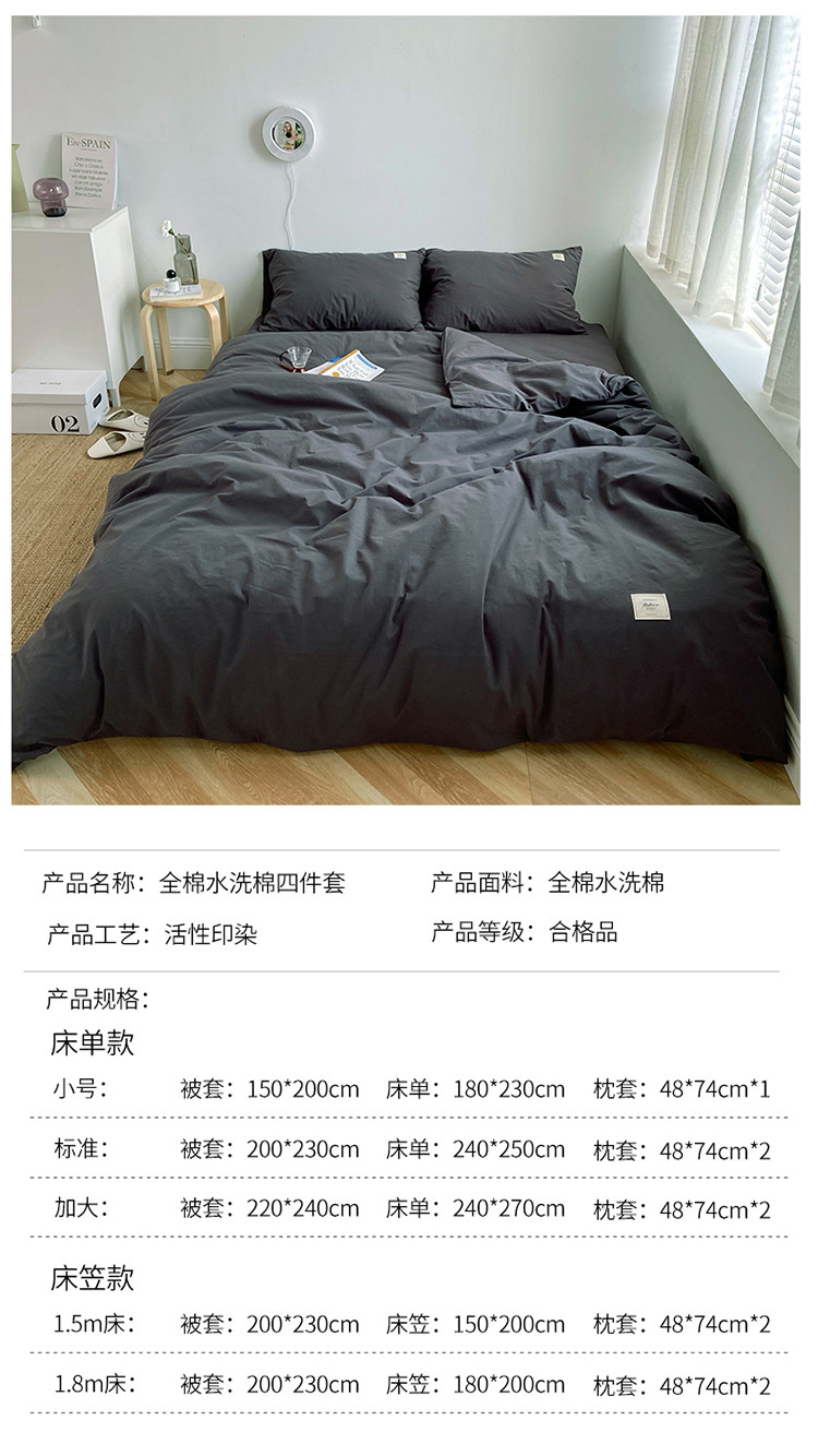 商品名称:雅居纺家纺 2022新款全棉水洗棉四件套 低调灰
