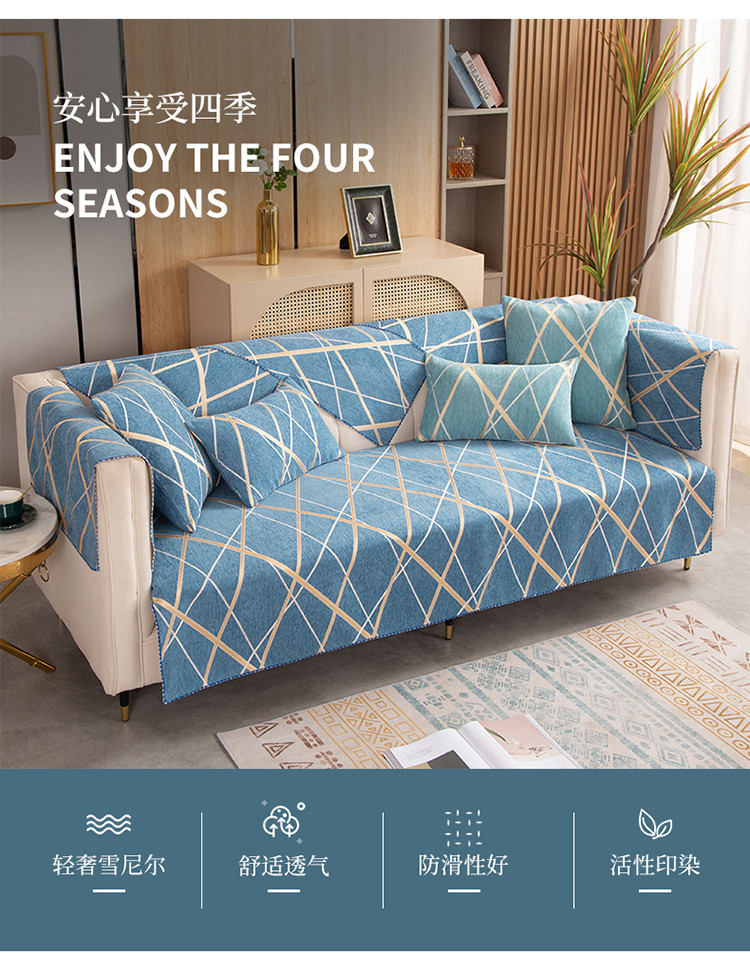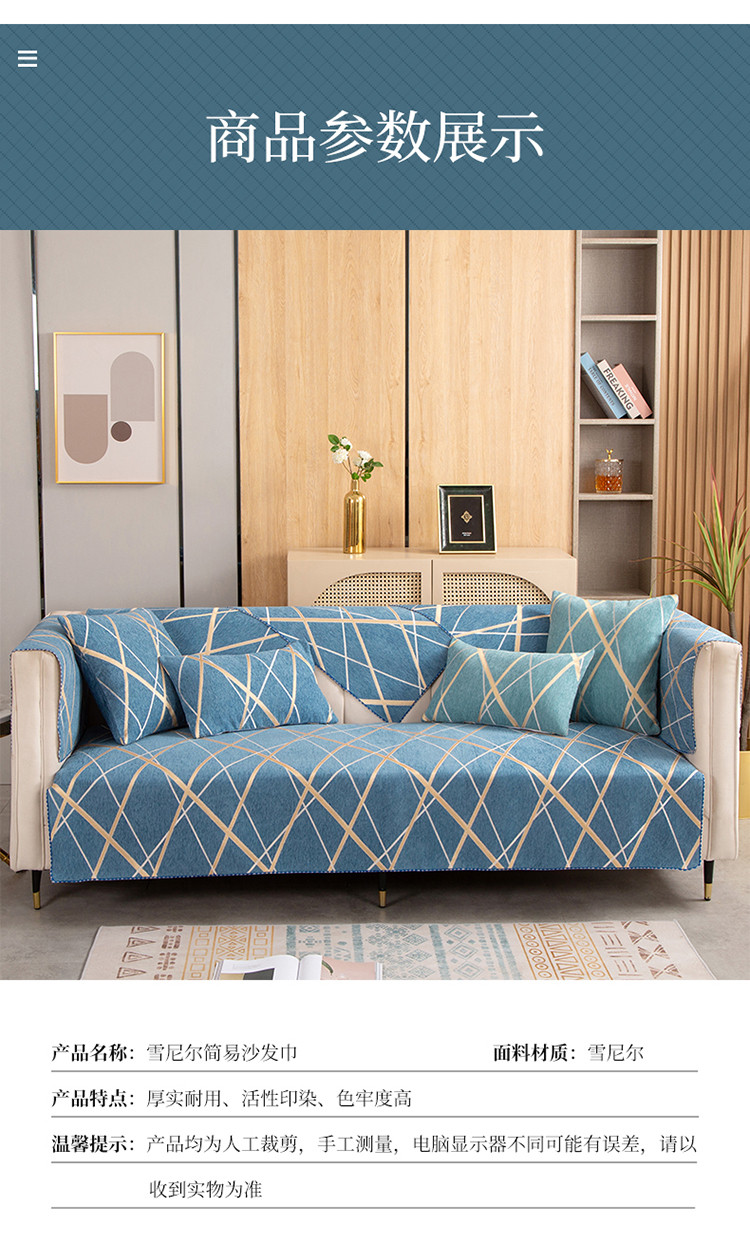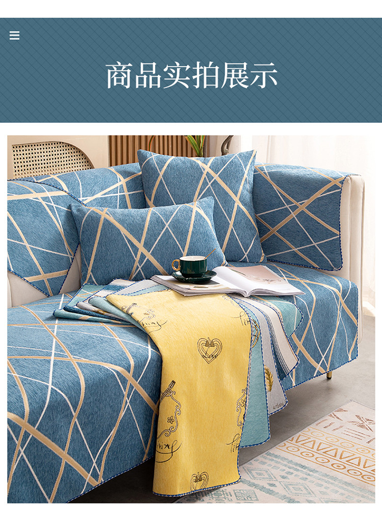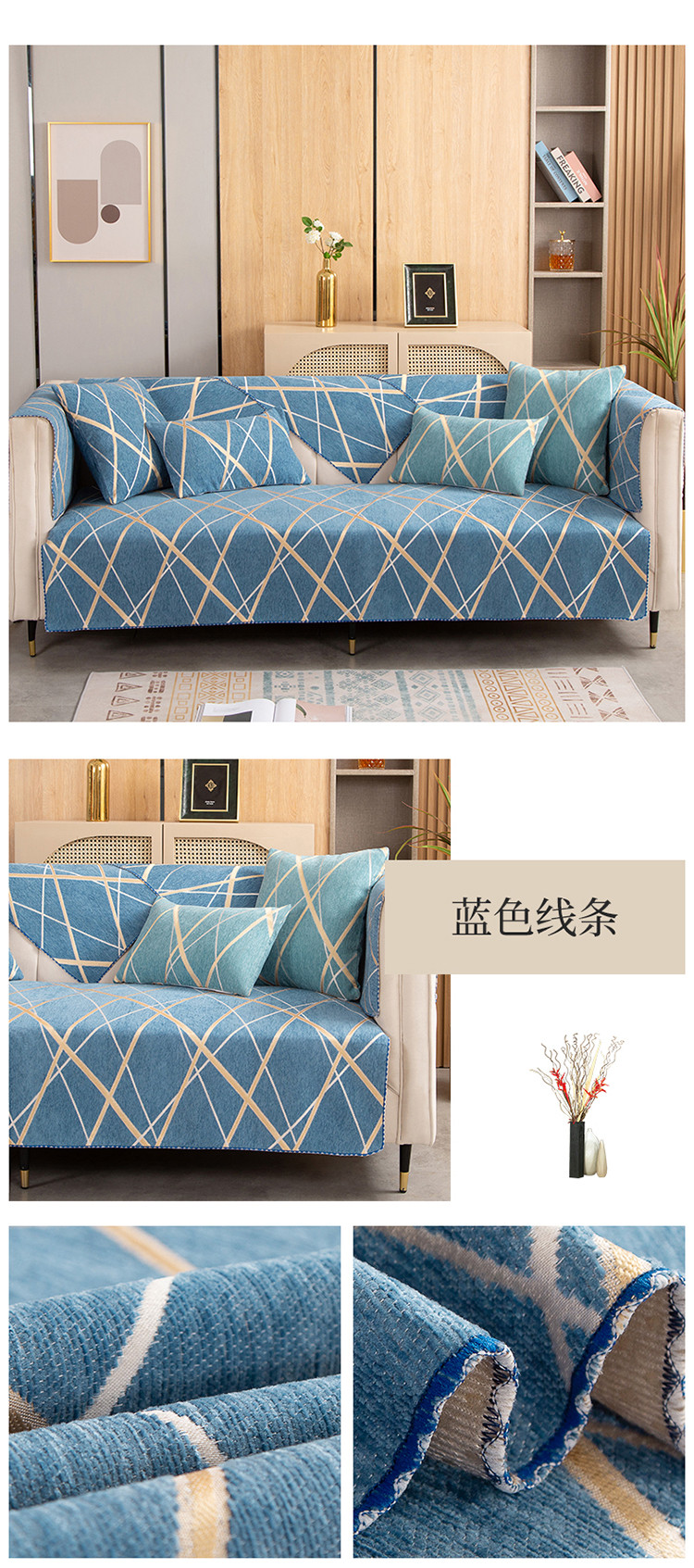 当前位置: 91家纺网 > 商品网购 > 居家布艺 > 坐垫/椅垫/沙发垫 > 沙发垫 > 启博家纺 2022全盖雪尼尔沙发巾沙发垫沙发套沙发罩 蓝色线条