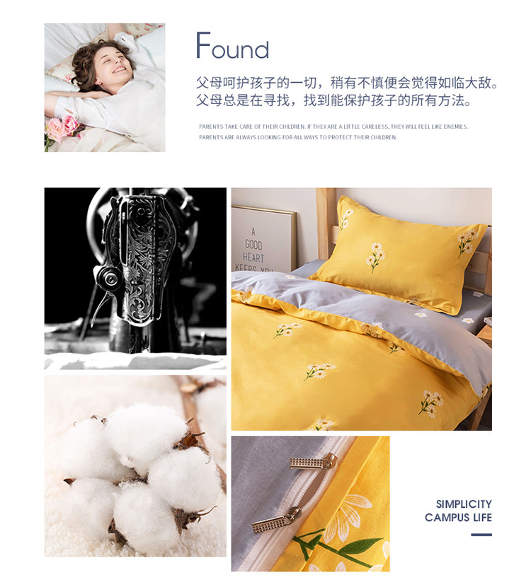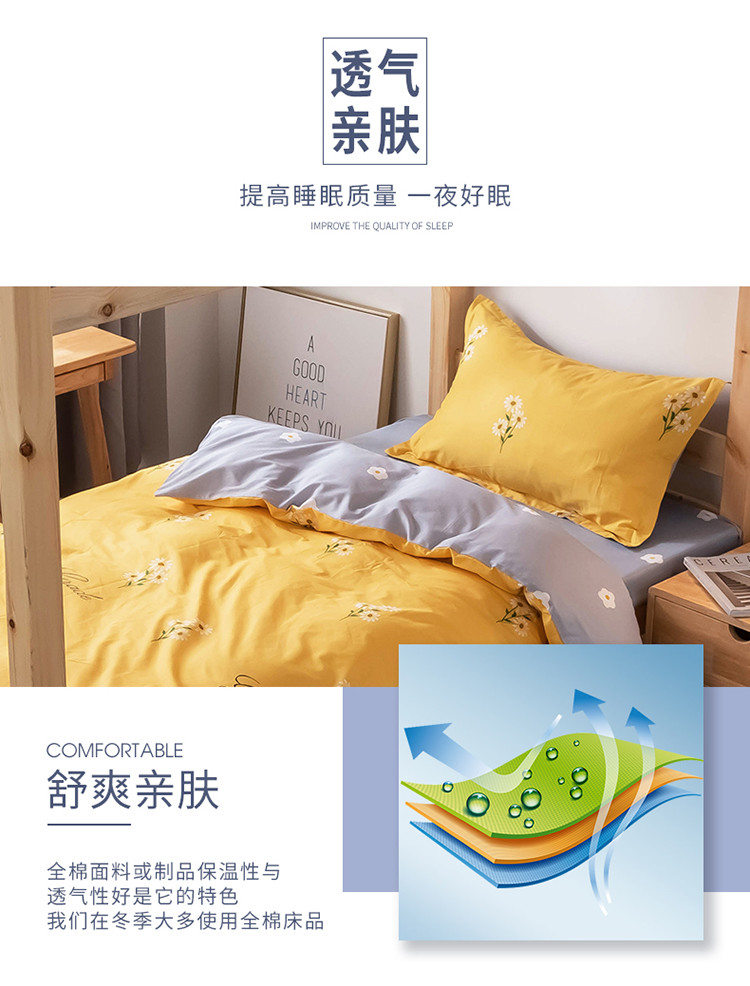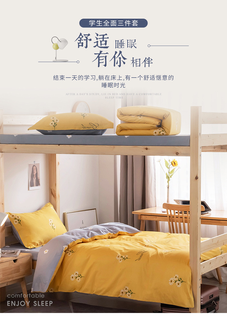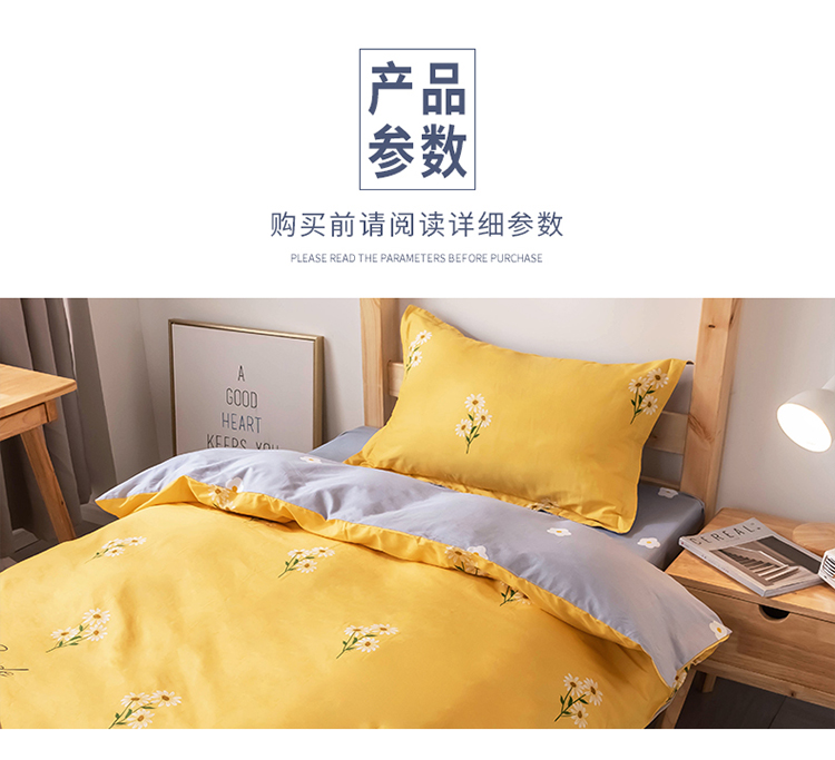 商品名称:芃成家纺 2021新款学生三件套 花香清新黄