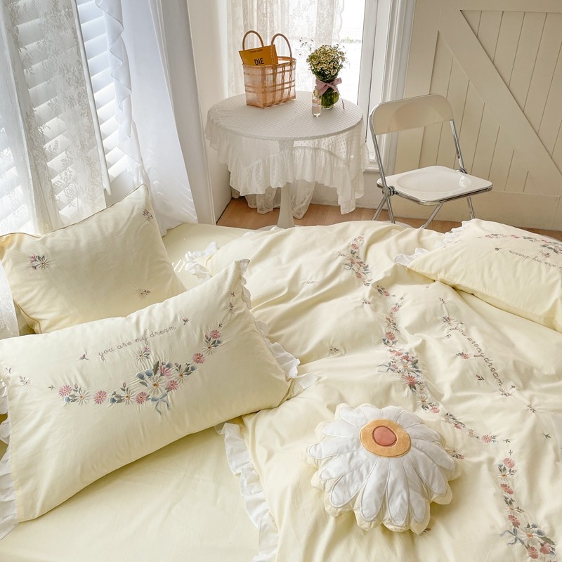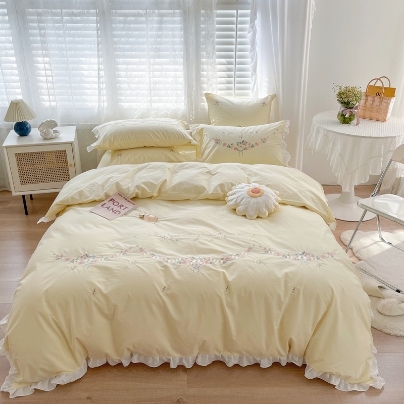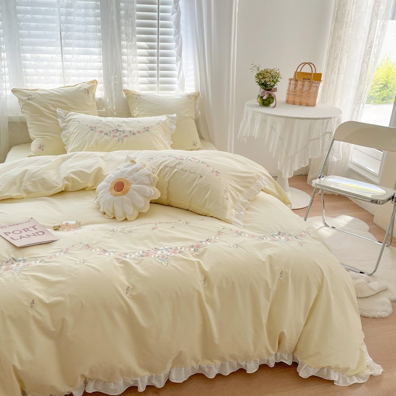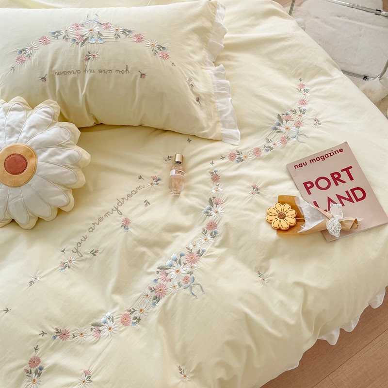 商品名称:馨蕊 2021新款全棉水洗棉四件套-陌上花开 陌上花开-黄