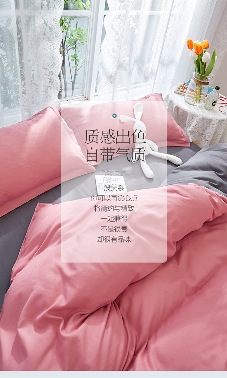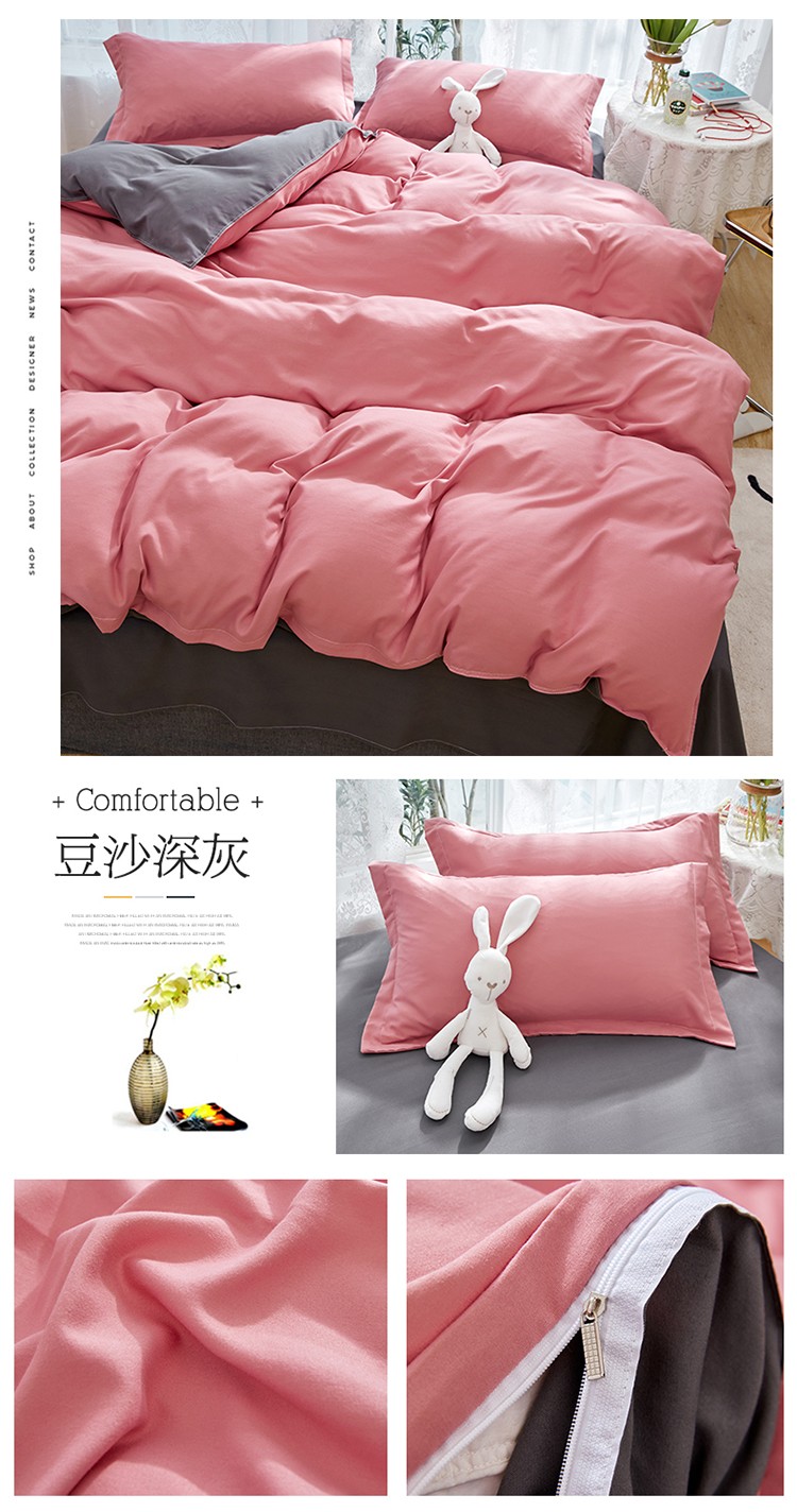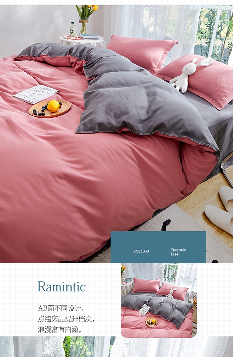 商品名称:贝拉梦 2021新款纯色拼色美棉系列四件套 豆沙深灰