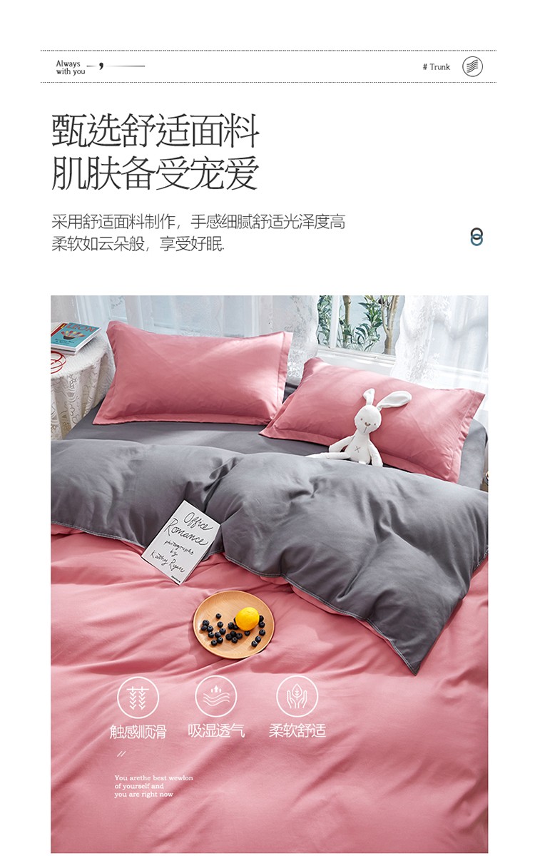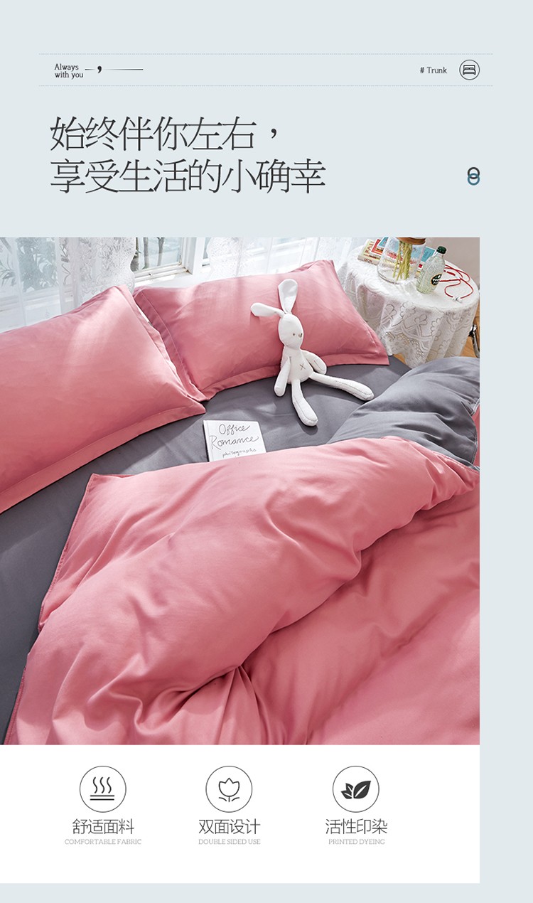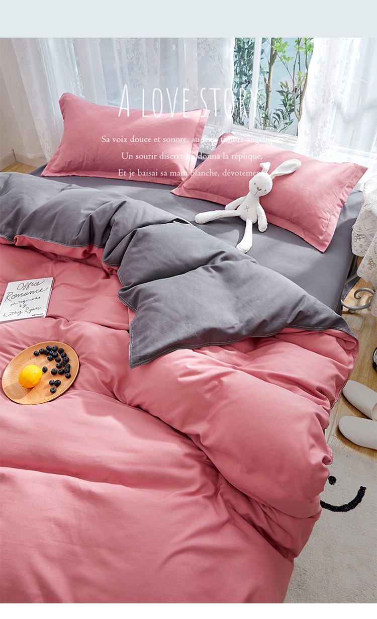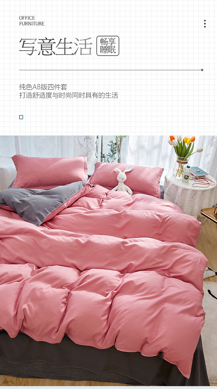 商品名称:贝拉梦 2021新款纯色拼色美棉系列四件套 豆沙深灰
