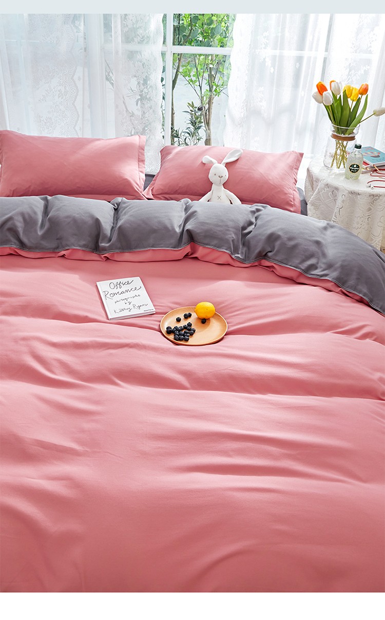 贝拉梦 2021新款纯色拼色美棉系列四件套 豆沙深灰